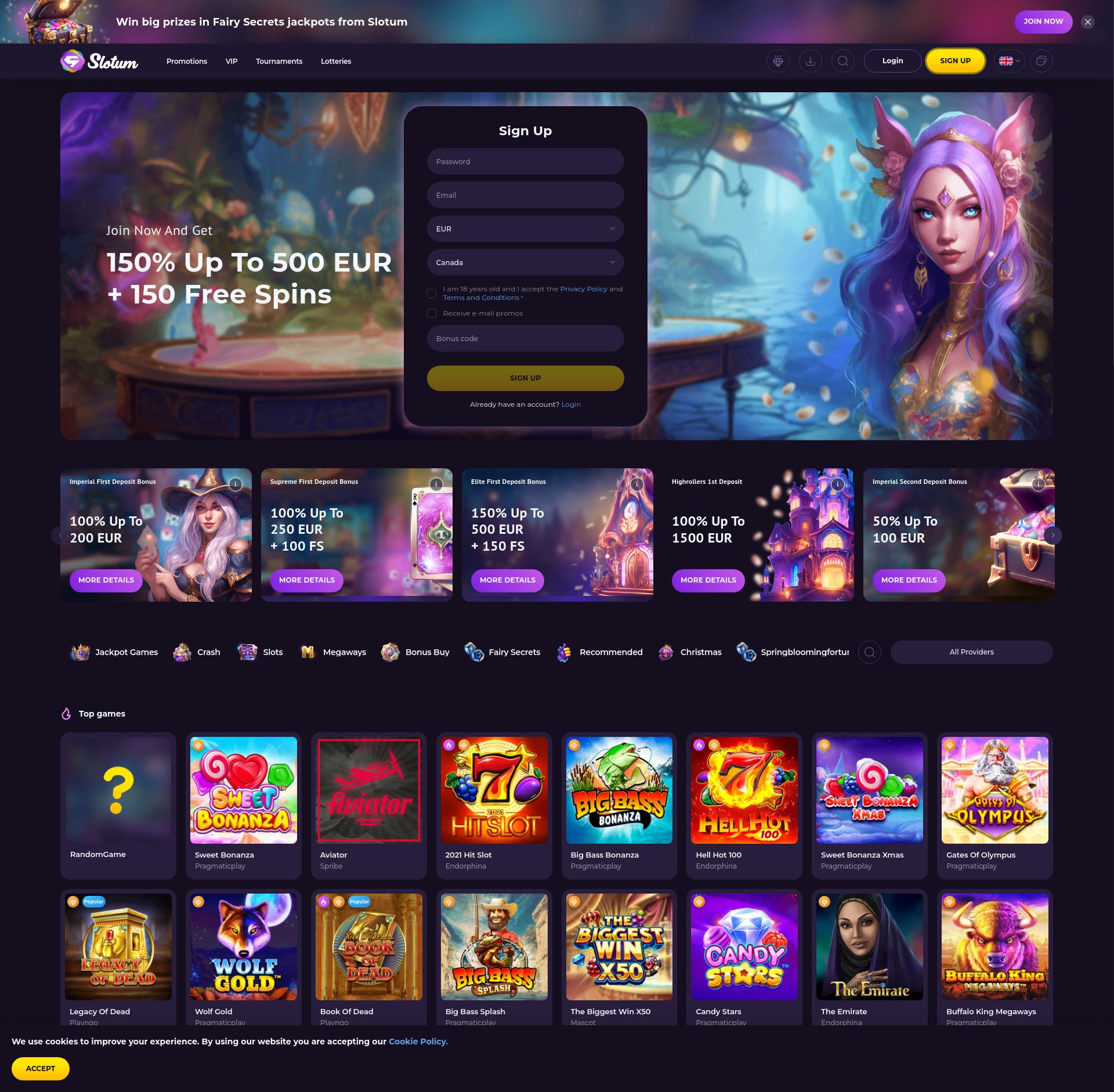 Hrajte 5200 automatové hry od 137 poskytovatelů her v Slotum kasinu. Přečtěte si naši recenzi Slotum, abyste se dozvěděli více o bonusech a propagačních akcích Slotum, bezplatných otočeních v kasinu Slotum a mnohem více!
