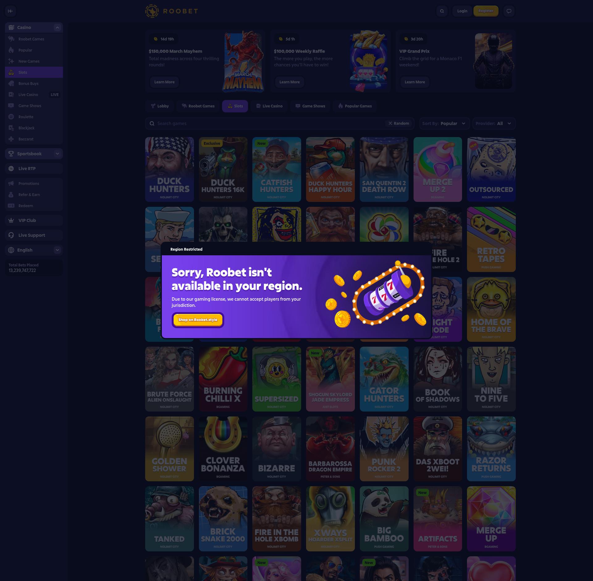 Unfortunately, casino Roobet does not accept players from your country. List of trustful casinos you can find here: The Best Online Casinos