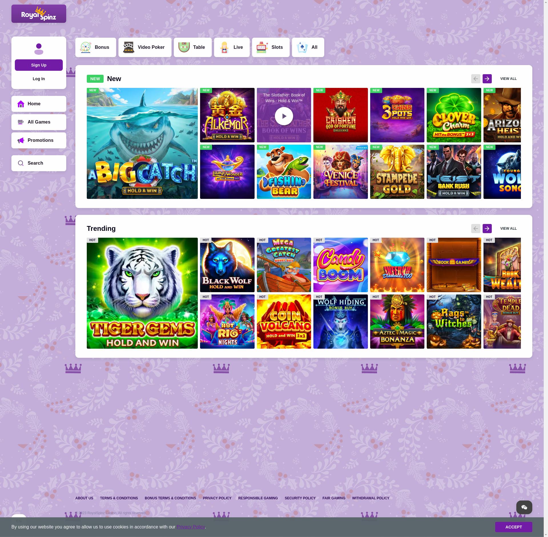 Having only been around for a short time, Royal Spinz has managed to capture casino gamers' attention with its simple layout and streamlined processes. Players have a variety of games to choose from, with the largest collection being slot varieties.