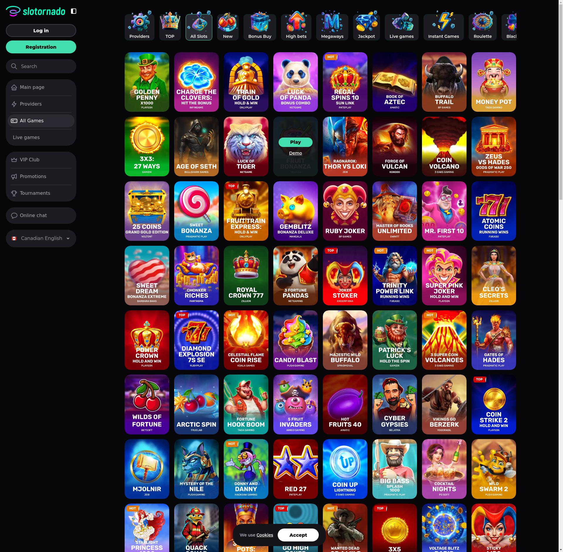 In this section you can see list of game providers that are available for your country on Slotornado.