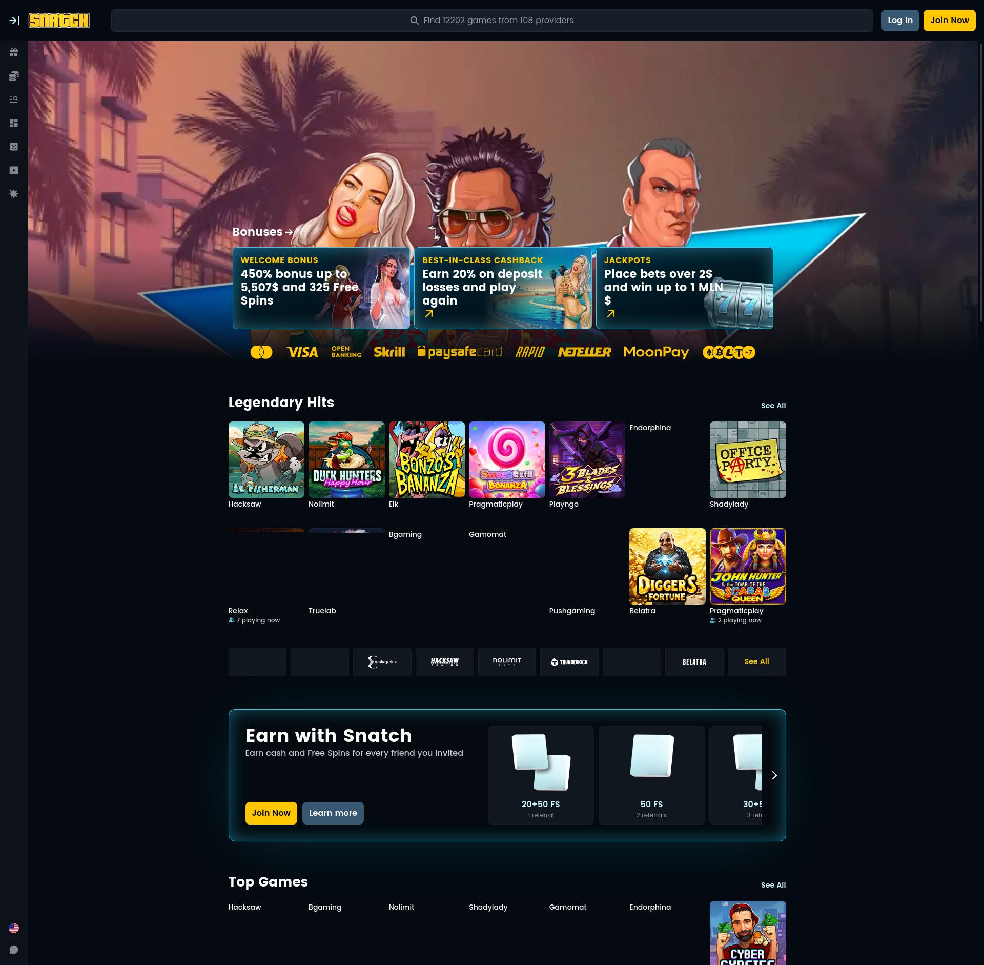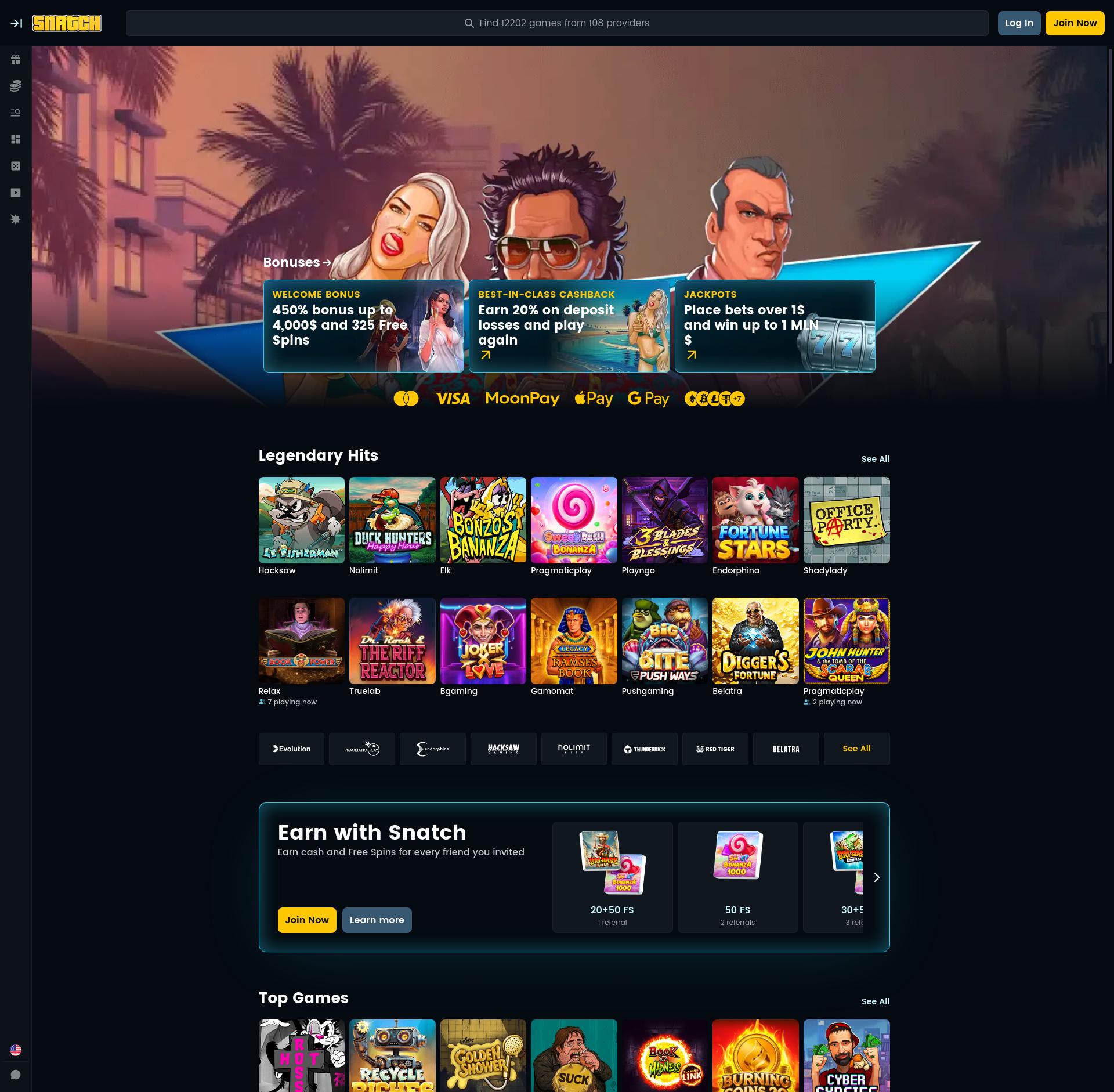 Play 8400 slot games from 187 game providers at Snatch Casino. Read our Snatch Casino review to learn more about Snatch Casino bonuses and promotions, Snatch Casino free spins, and much more!