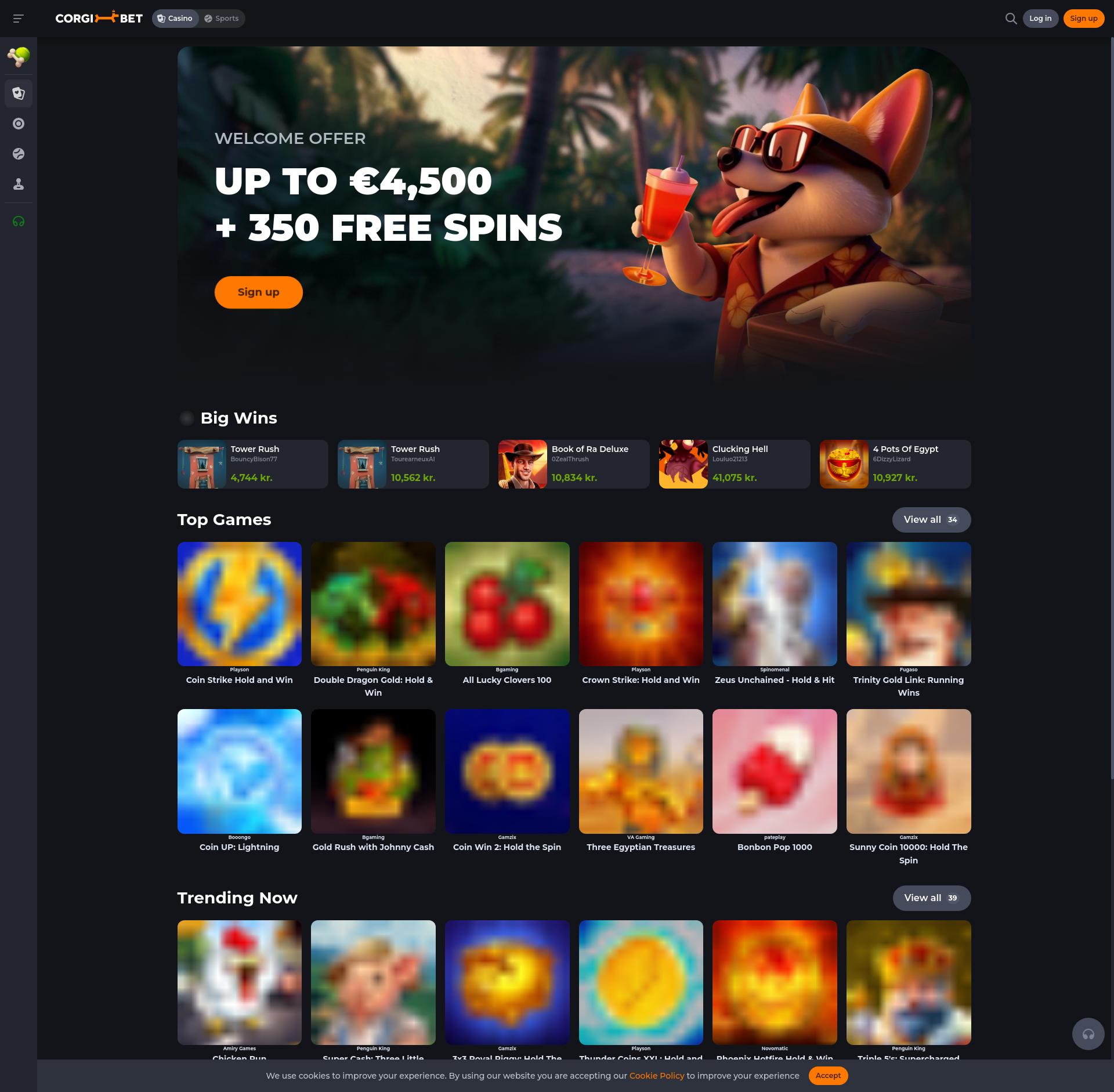 Play 6200 slot games from 144 game providers at CorgiBet (New Brand) Casino. Read our CorgiBet review to learn more about CorgiBet bonuses and promotions, CorgiBet Casino free spins, and much more!
