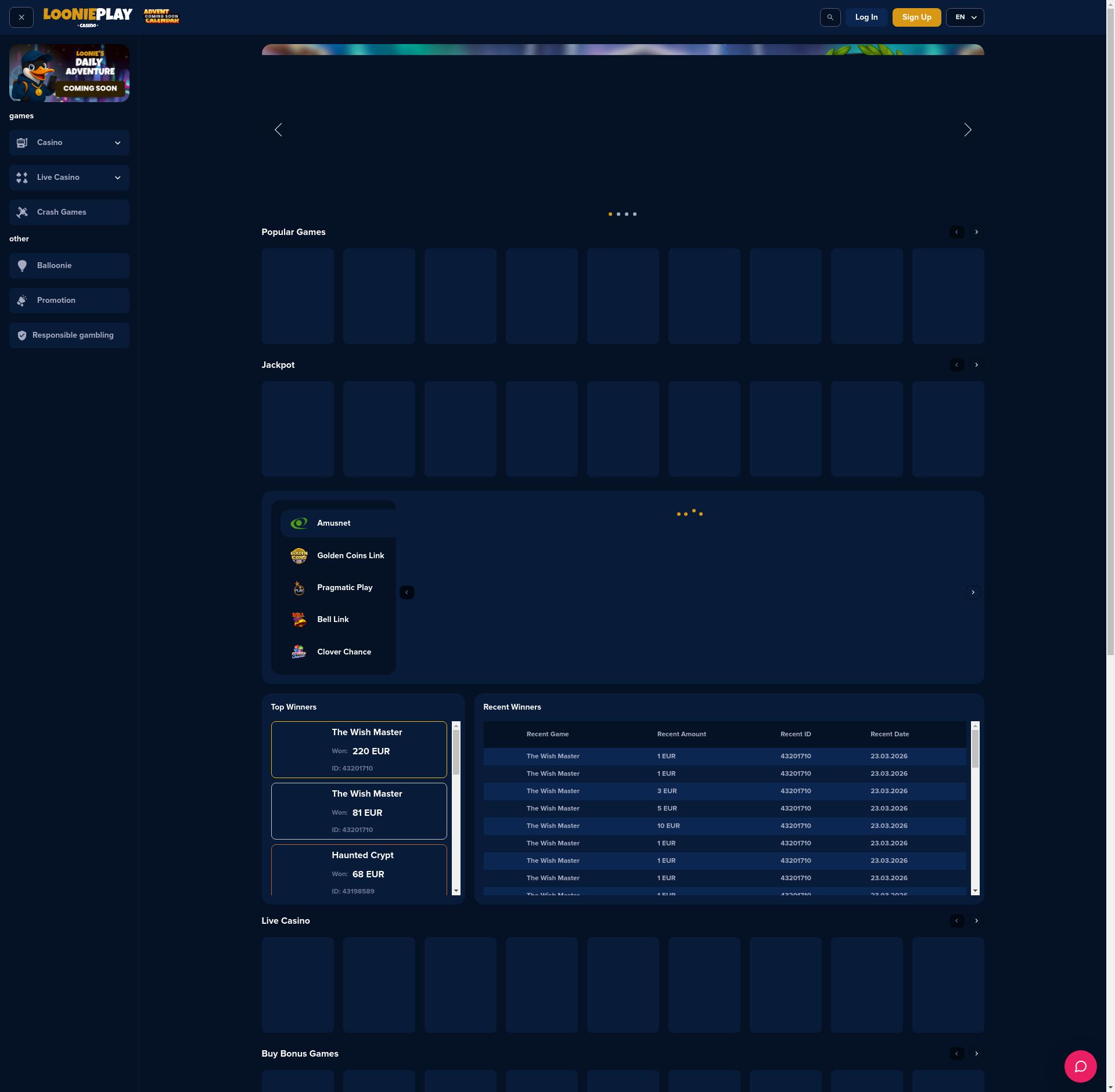 Top LooniePlay is the games that we have found on the highers positions of the casino`s lobby. As evidence you can check screens here. Sometimes our matching system can skip some games. Let us know in case you see difference between this list and casino screen.