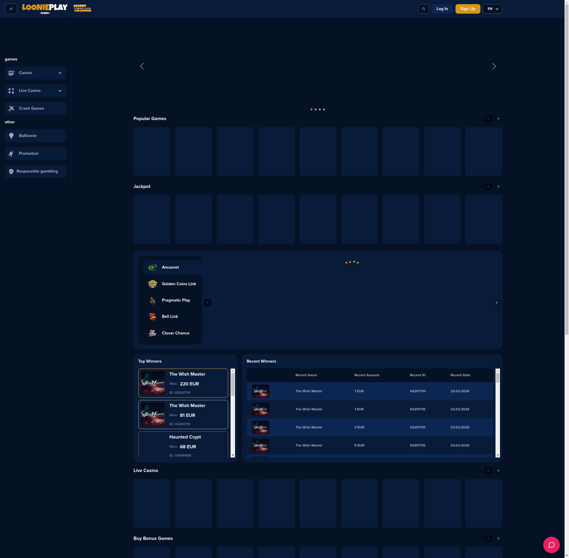 In this section you can see list of game providers that are available for your country on LooniePlay.