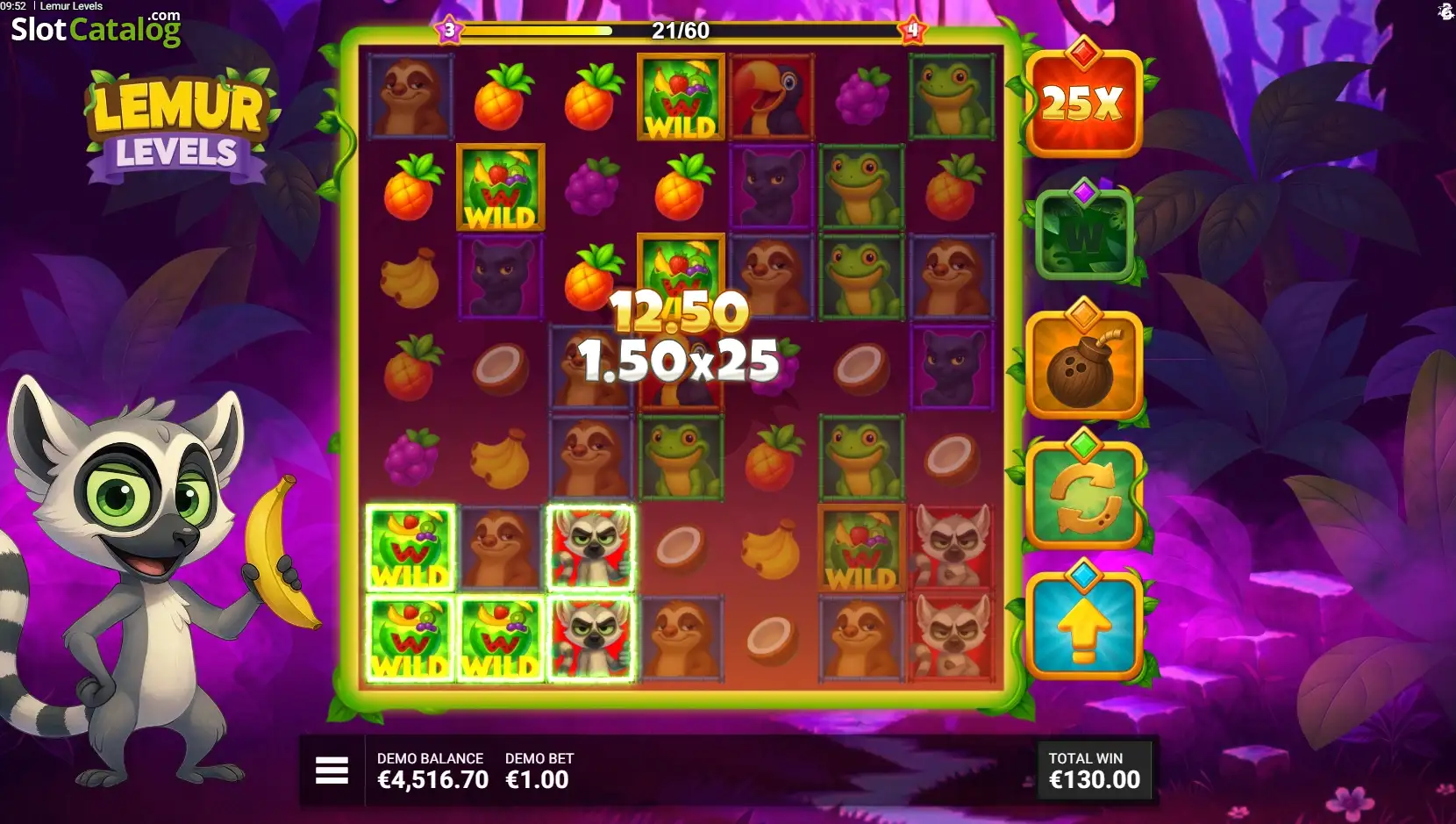We recommend playing any slots in risk-free mode first, especially highly volatile cluster slots like this one. So don't miss the opportunity to make a few spins in the Lemur Levels free play option, as you can do that without spending any real money. At the time of writing, this title is still in development. But we already have a Lemur Levels demo, so test it right here on SlotCatalog.