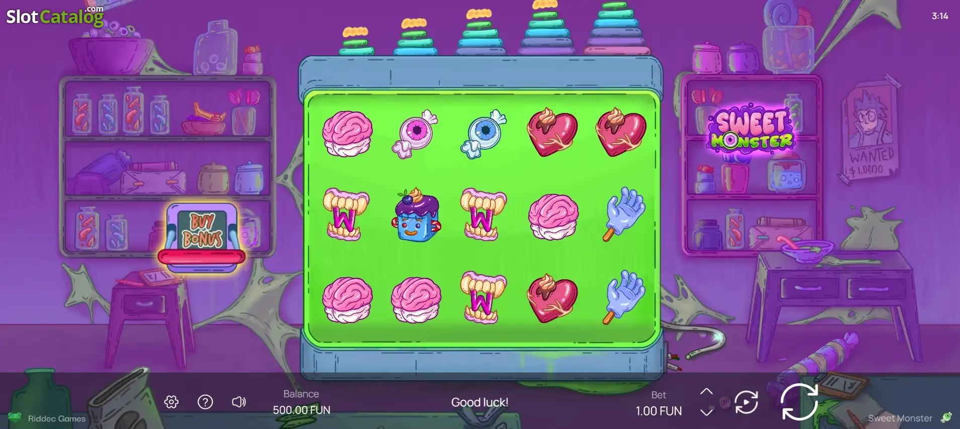 Sweet Monster slot by Riddec Games, is a low volatility game and paying up to 5000x the bet! The game's theme is sweets and monsters, the RTP is 97%, and it has the following features: scatter and wild symbols, buy feature and free spins. Find out more in our review, or check out the free Sweet Monster demo!