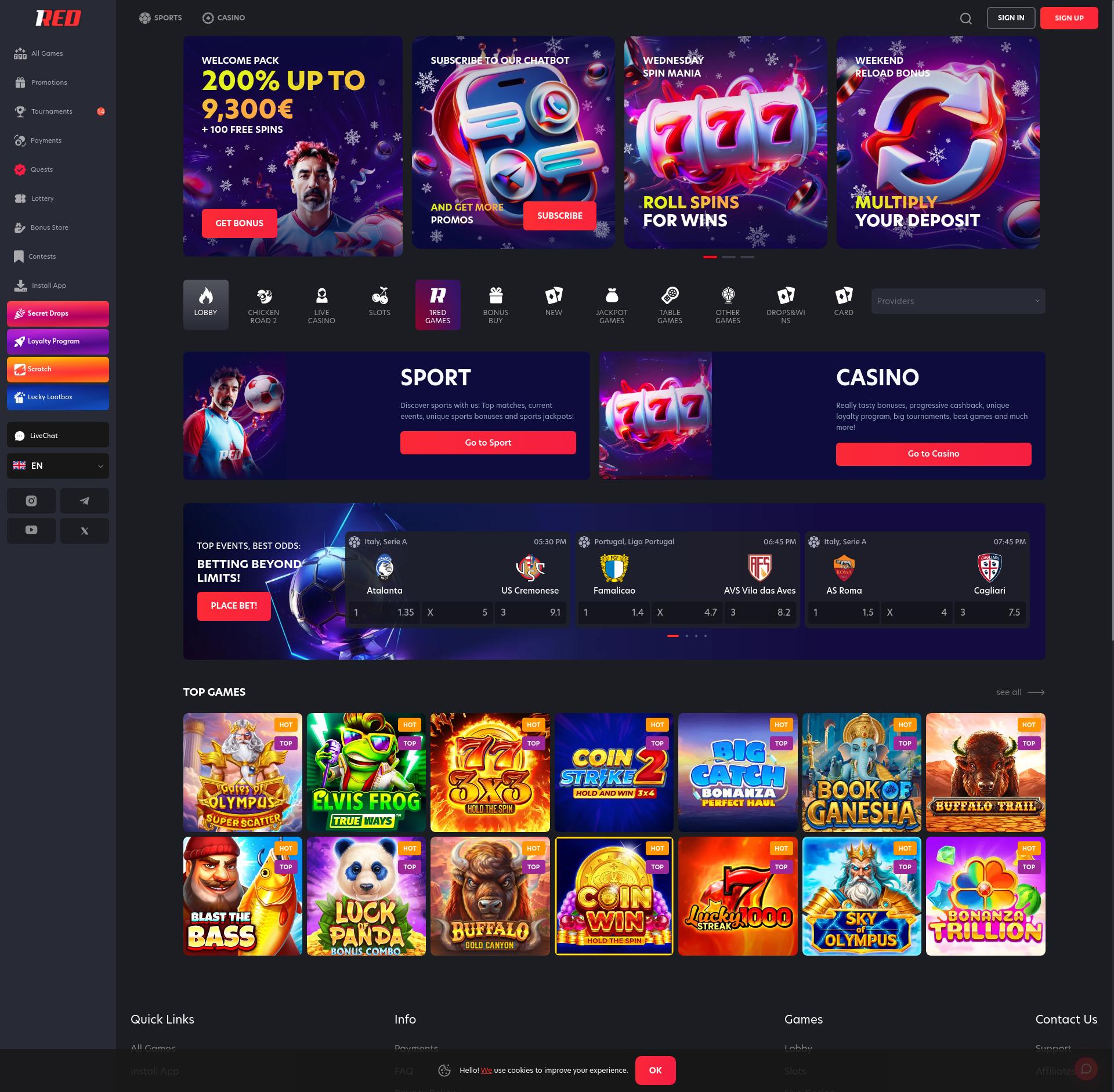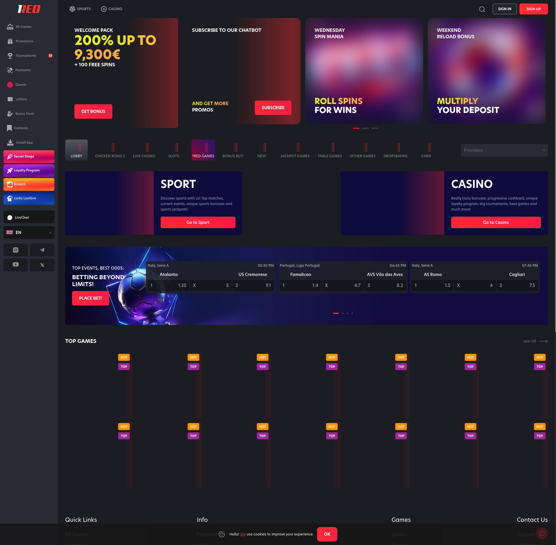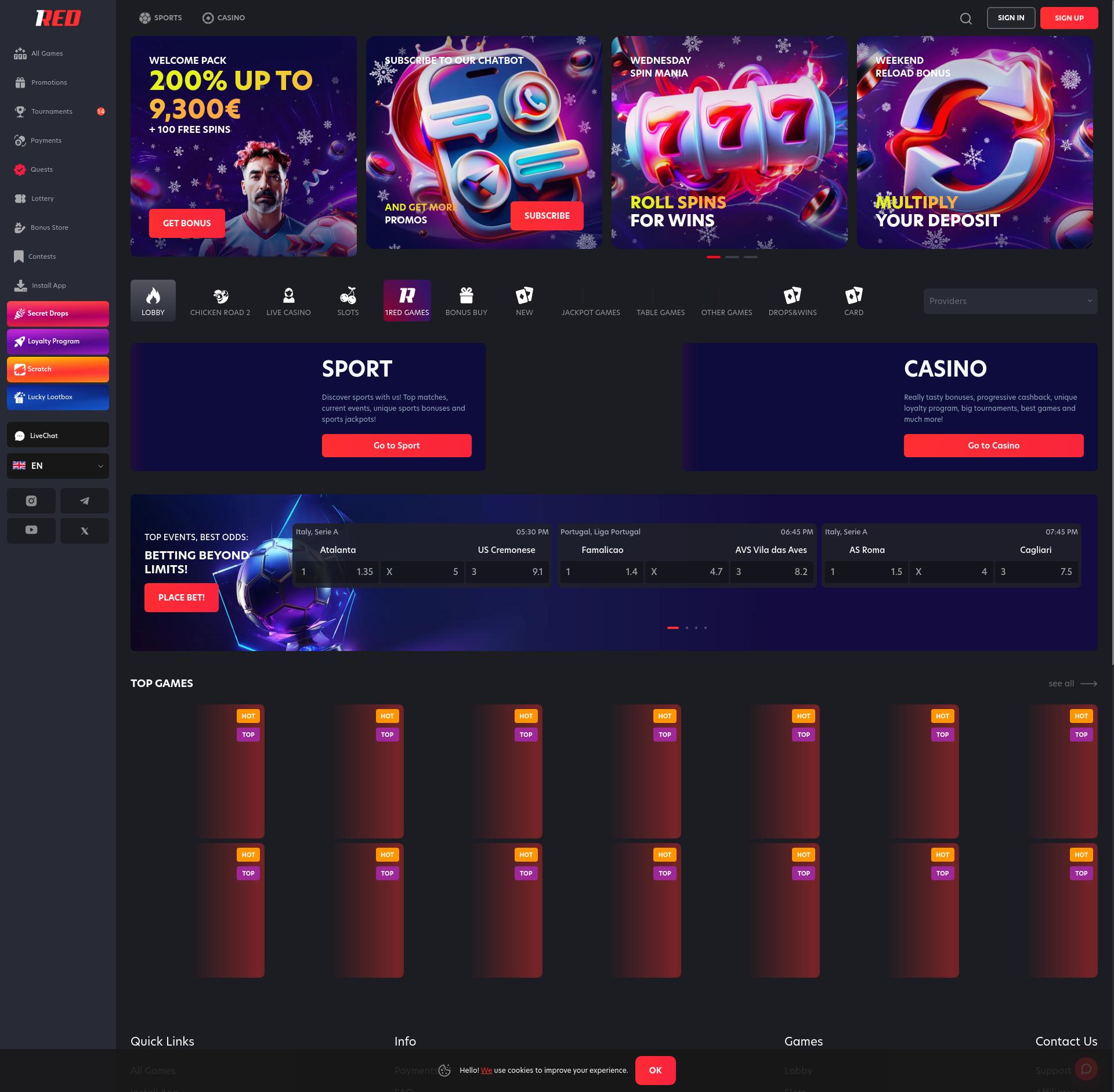 Sfortunatamente, il casinò 1Red Casino non accetta giocatori dal tuo paese. Elenco di casinò affidabili che puoi trovare qui: I migliori casinò online per Italia