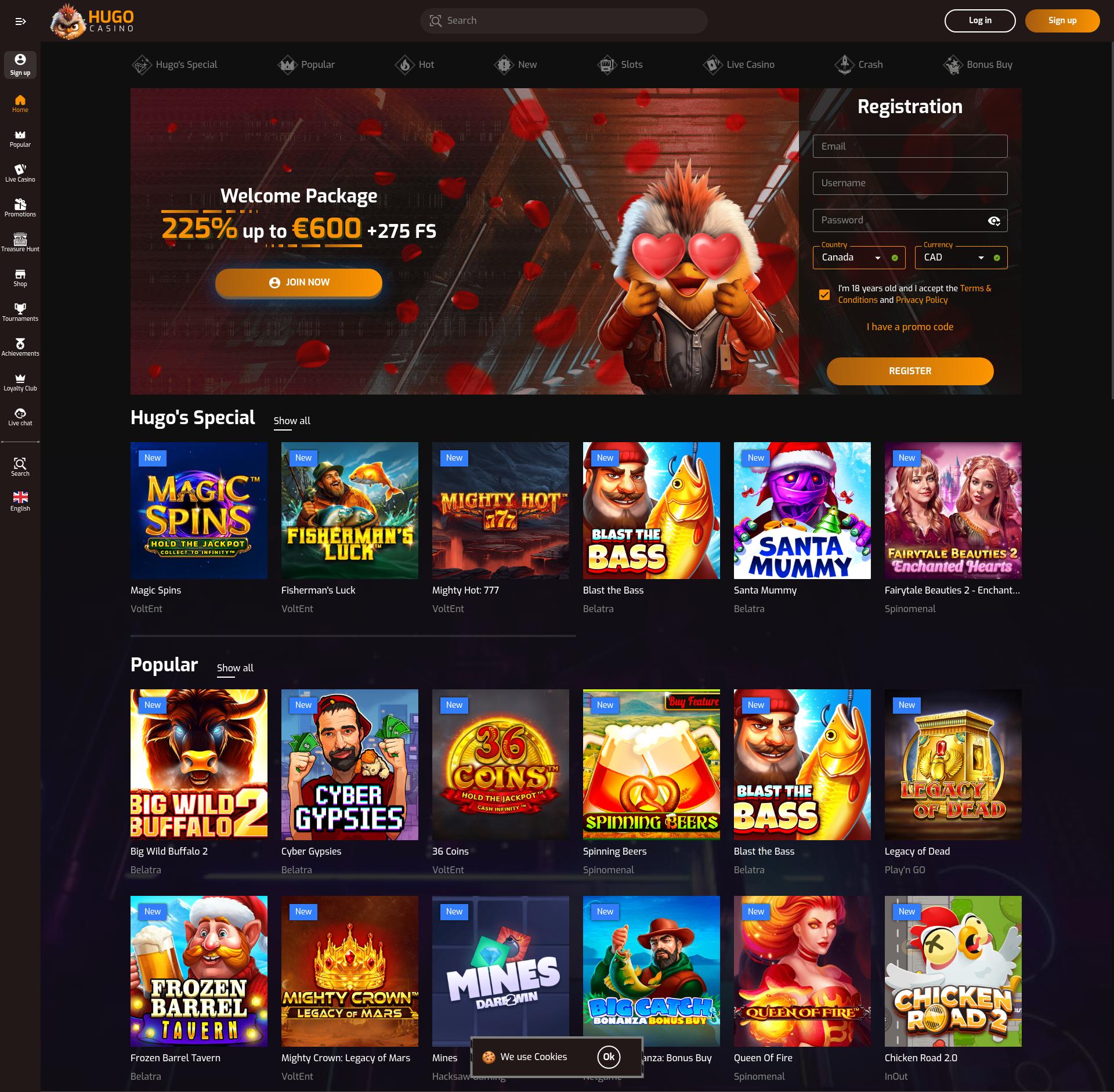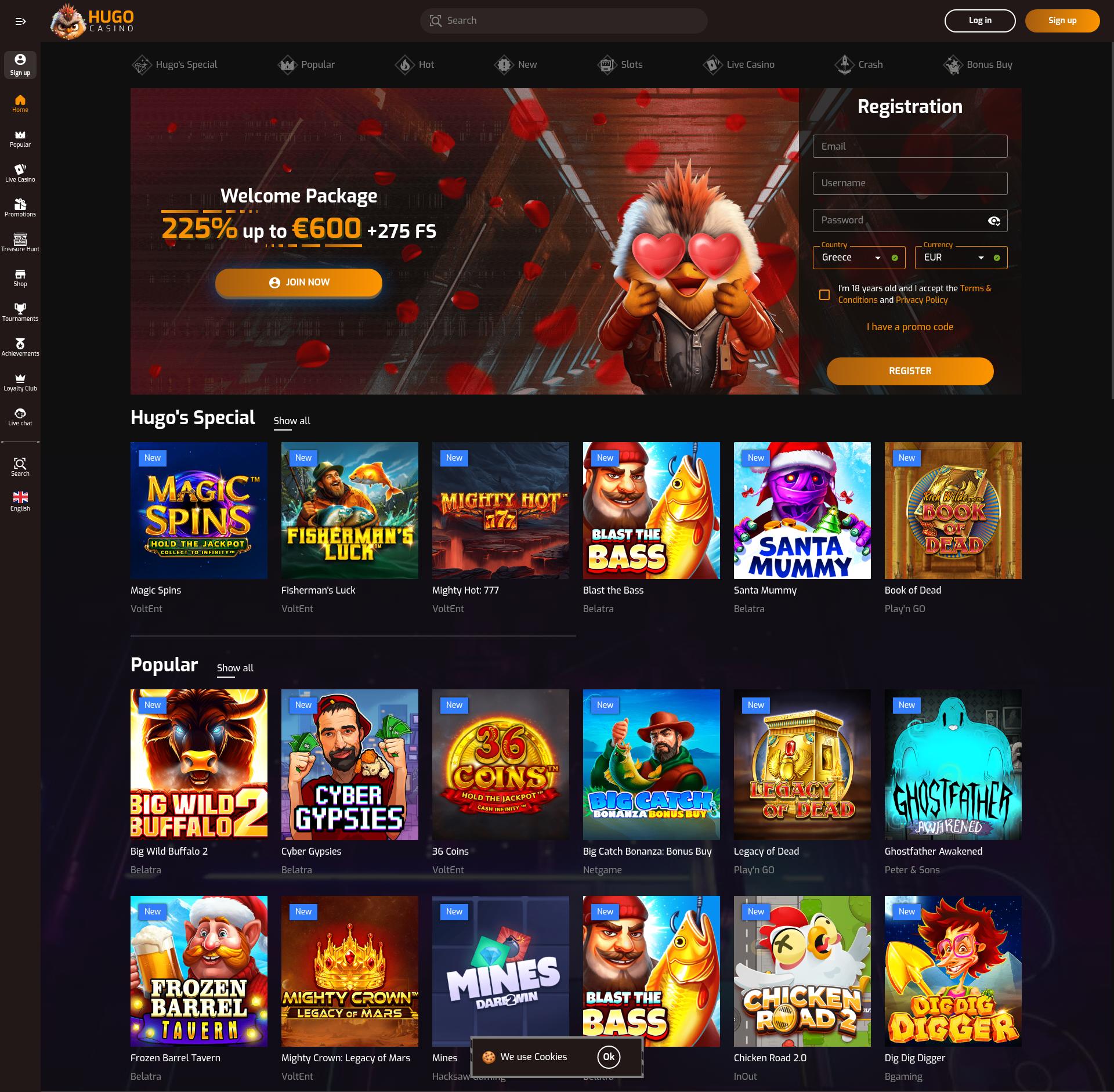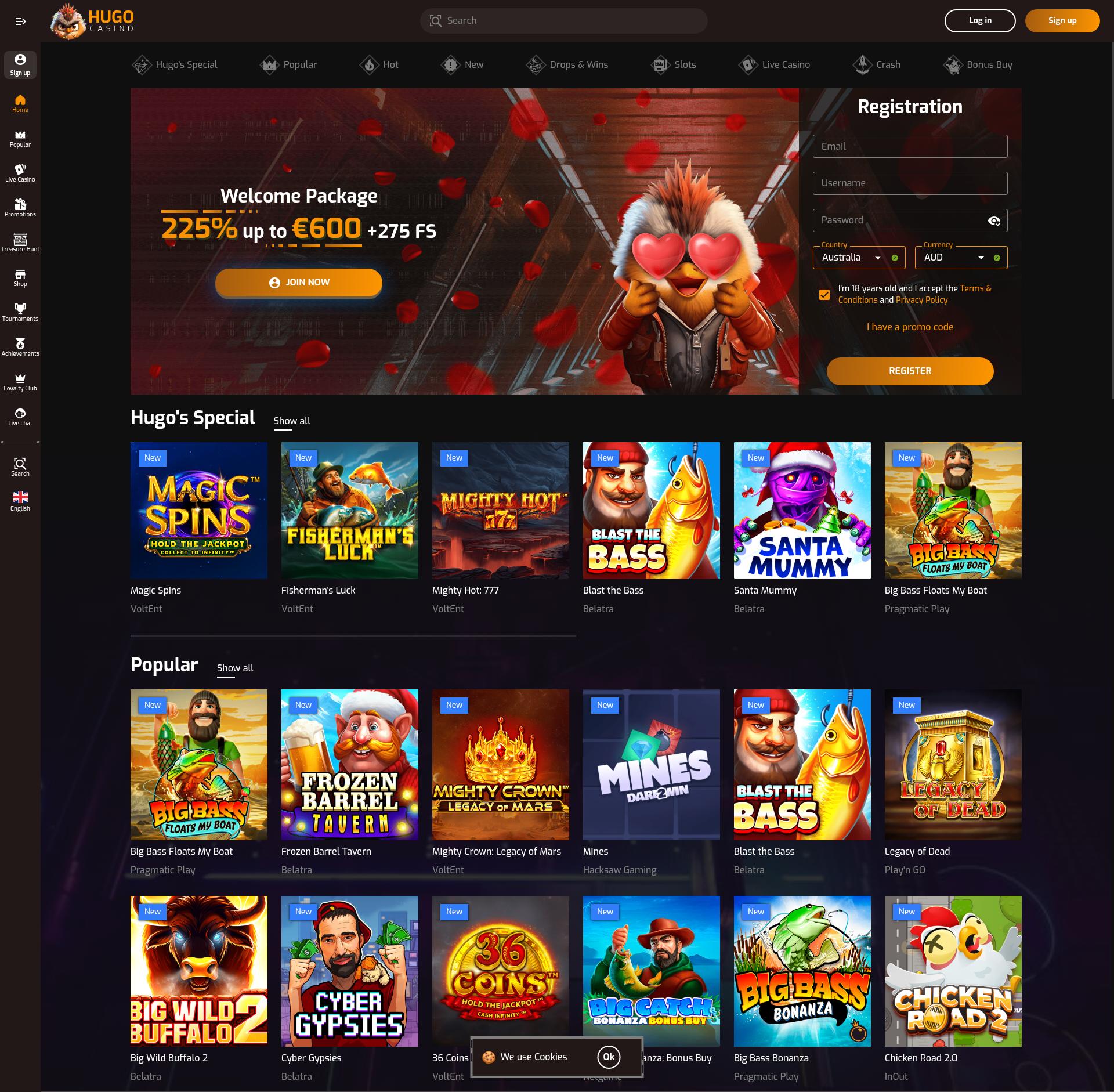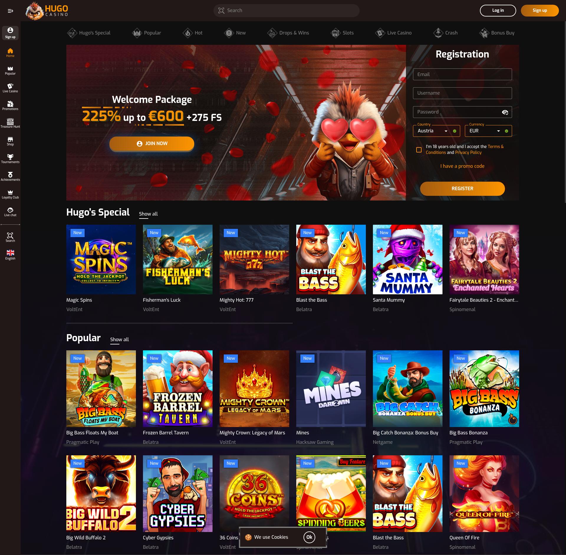 Hugo Casino è solo per persone adulte di età superiore ai 18+. Ricorda di mantenere la calma e di essere responsabile. Tutti i bonus elencati su SlotCatalog richiedono la creazione di un account valido a Hugo Casino. La maggior parte dei bonus richiede un deposito in denaro reale. Si applicano termini e condizioni.