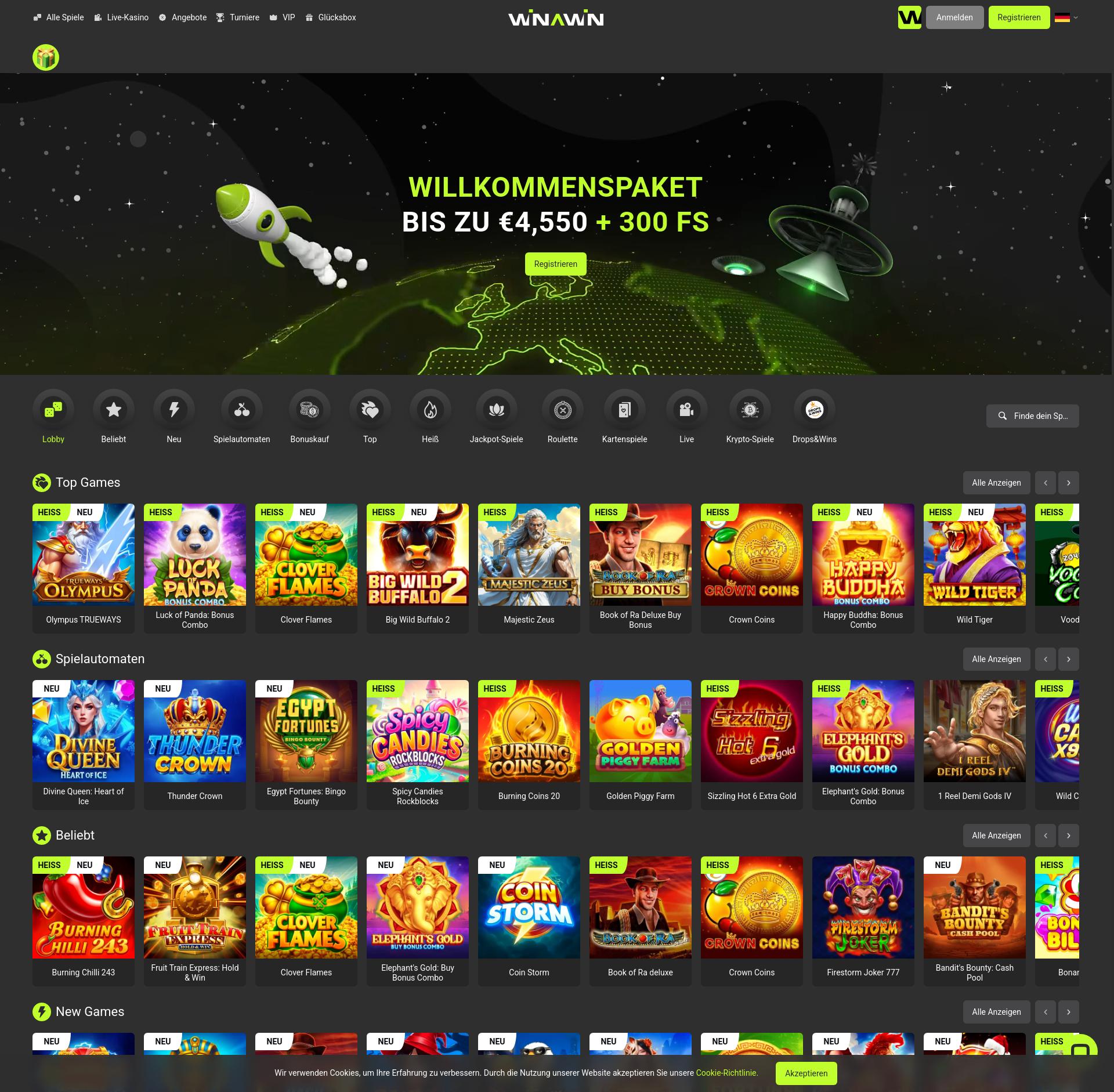 Sfortunatamente Winawin Casino non accetta giocatori del tuo paese. Ecco perché l'elenco dei giochi è assente. Controlla l'elenco dei casinò Trustfull che accettano giocatori dal tuo paese. Per te bonus disponibili che puoi trovare nella sezione Bonus del Casinò Online.