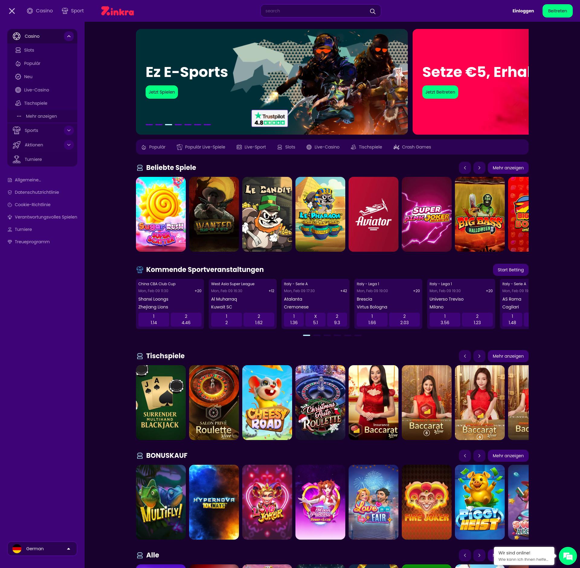 Sfortunatamente Zinkra Casino non accetta giocatori del tuo paese. Ecco perché l'elenco dei giochi è assente. Controlla l'elenco dei casinò Trustfull che accettano giocatori dal tuo paese. Per te bonus disponibili che puoi trovare nella sezione Bonus del Casinò Online.