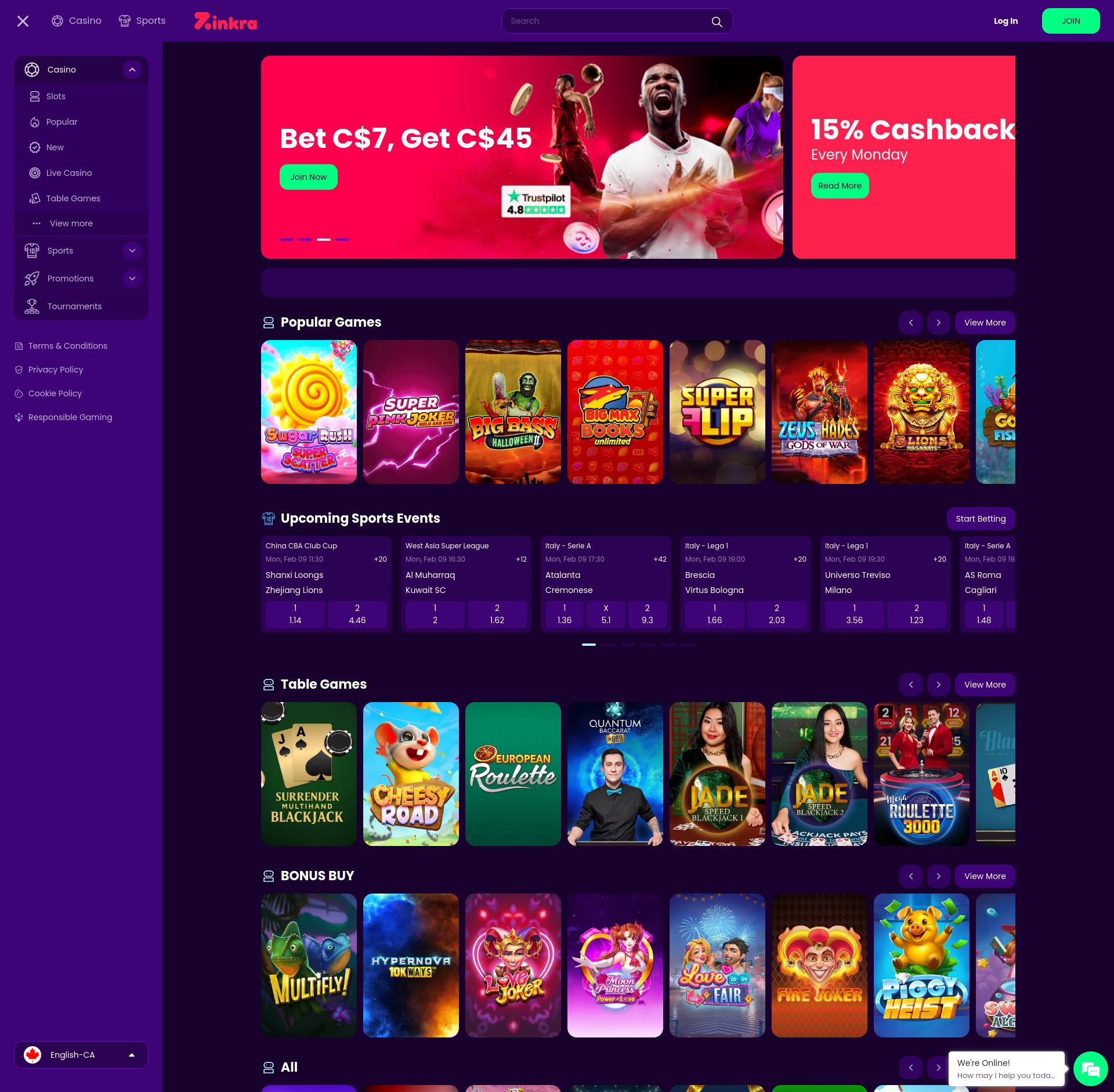 Tutti i casinò online devono offrire un numero sufficiente di giochi da casinò e siamo felici di segnalare che Zinkra Casino lo fa. Il suo sito web dice che ci sono già più di 3.000 slot online in offerta - e noi crediamo che questo numero. Questo perché il catalogo delle slot ha le migliori versioni di decine di sviluppatori. Sì, decine! Da Microgaming e Big Time Gaming a iSoftBet e Quickspin, c'è così tanta varietà che non saprai nemmeno da dove cominciare. Per fortuna, hai sempre accesso all'utile funzione di ricerca del casinò.
