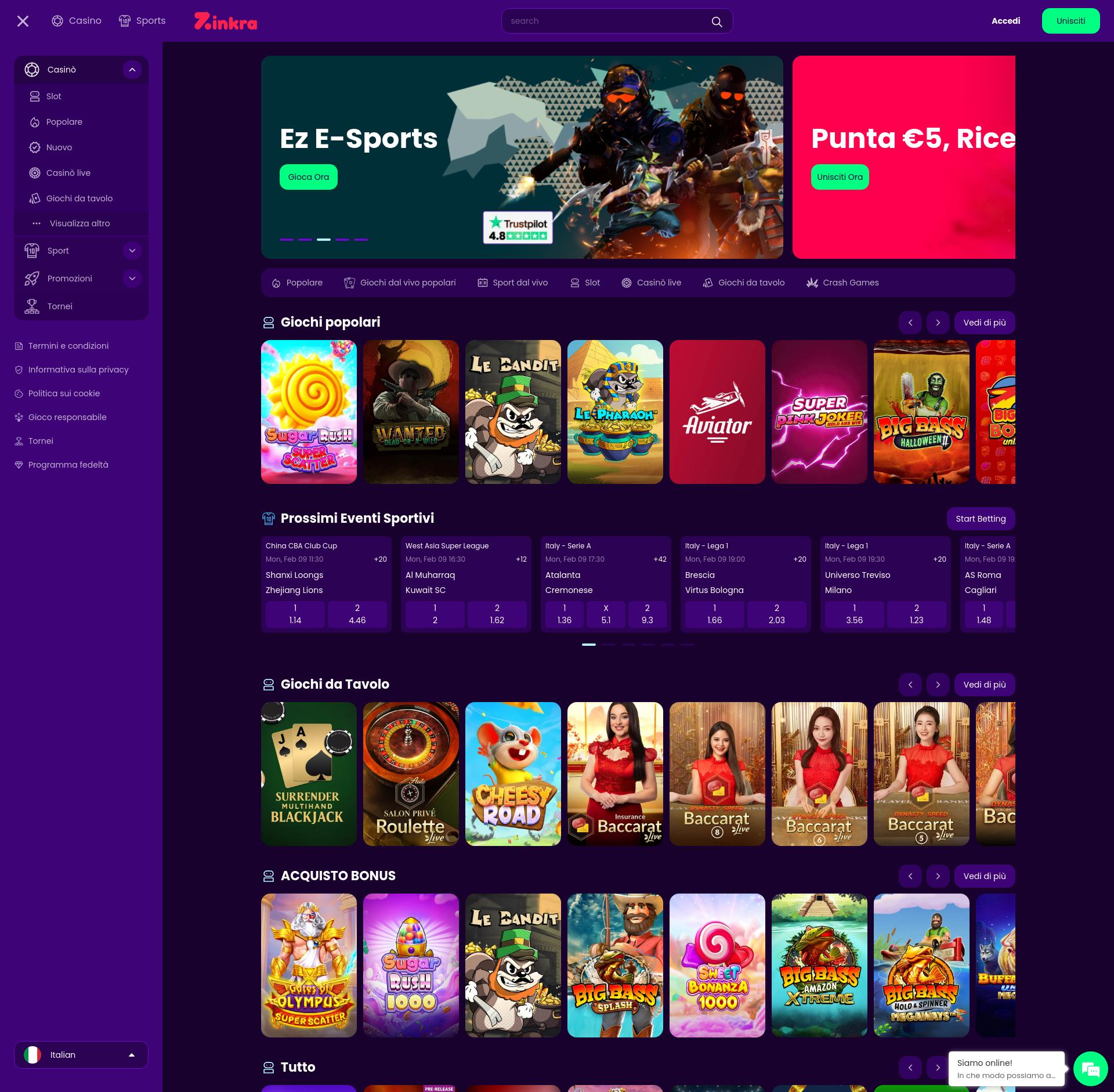 Sfortunatamente, il casinò Zinkra Casino non accetta giocatori dal tuo paese. Elenco di casinò affidabili che puoi trovare qui: I migliori casinò online per Italia