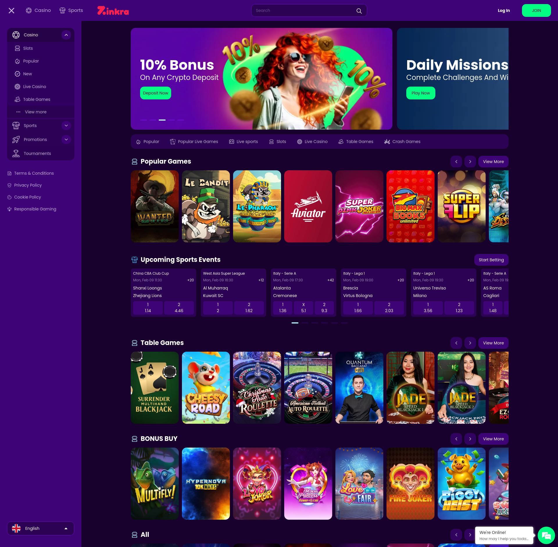 Non c'è molto in termini di video poker, ma i fan dei giochi da casinò classici come il blackjack e la roulette possono gioire. A parte i tavoli base che puoi trovare praticamente ovunque, Zinkra Casino offre anche un discreto numero di tavoli dal vivo! La linea di fondo è che ha qualcosa per quasi tutti, che è una caratteristica importante data la sua attenzione al pubblico occasionale.