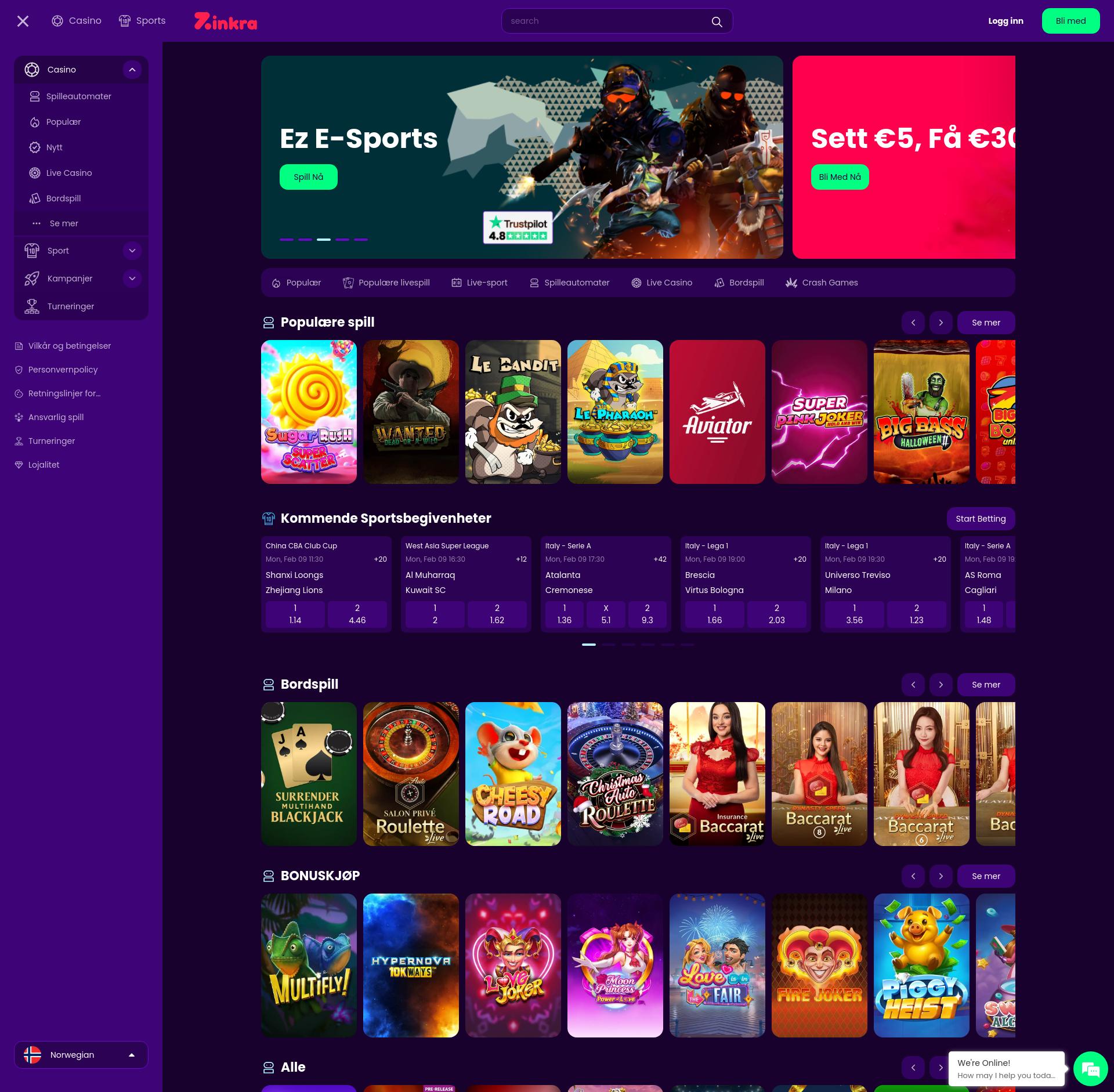 Zinkra Casino potrebbe essere un casinò affidabile, ma apprezzeremmo qualcosa di un po' meglio dal lato dell'assistenza clienti. Non c'è una sezione delle FAQ, tanto per cominciare, il che significa che devi fare affidamento quasi esclusivamente sulla chat dal vivo del casinò. Tra i lati positivi, è facile accedervi, poiché è sempre presente un pulsante Chat mobile sul lato destro del sito Web. In altre parole, l'aiuto è sempre vicino!