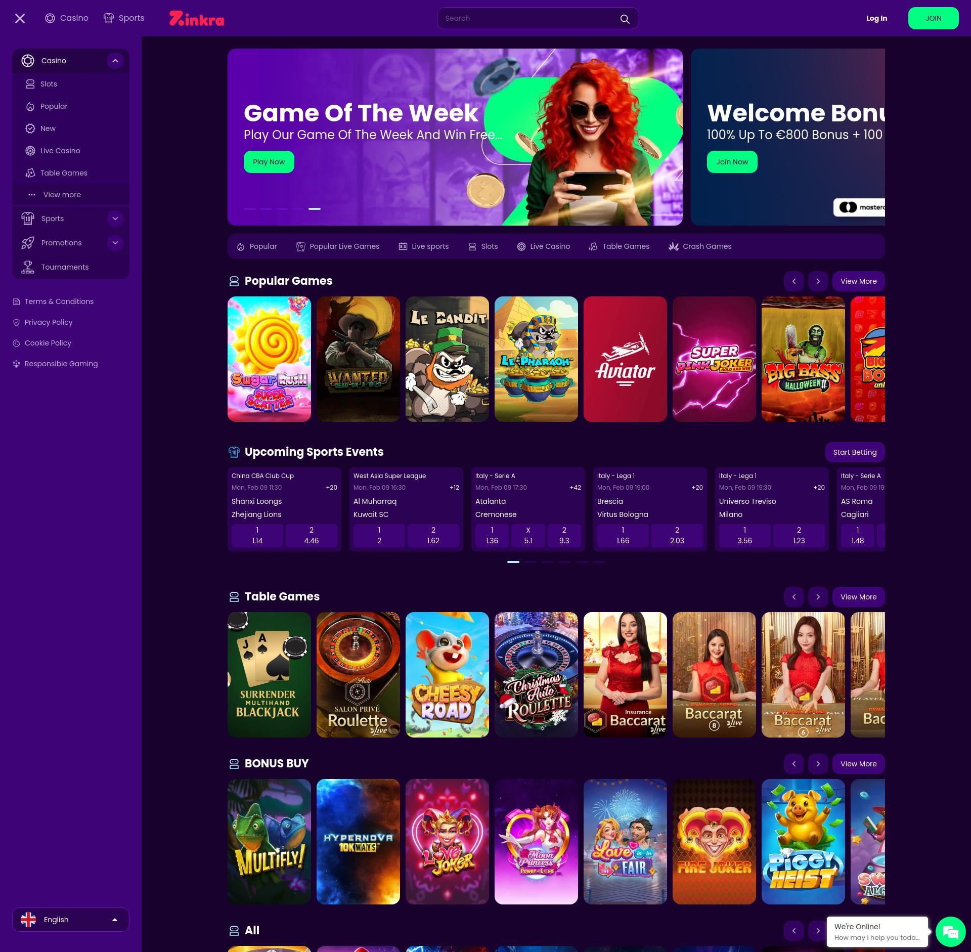 Zinkra Casino Giochi