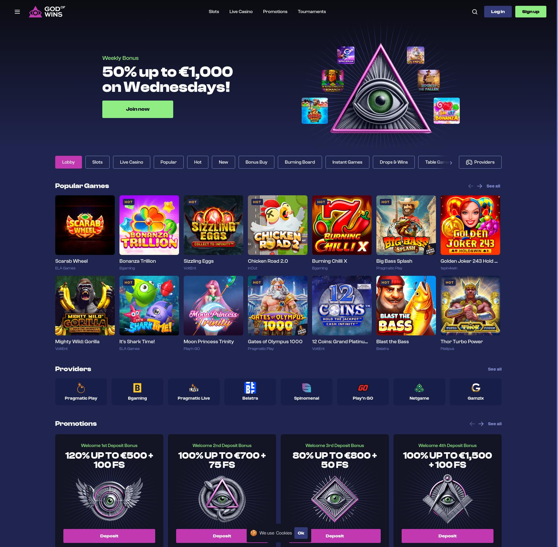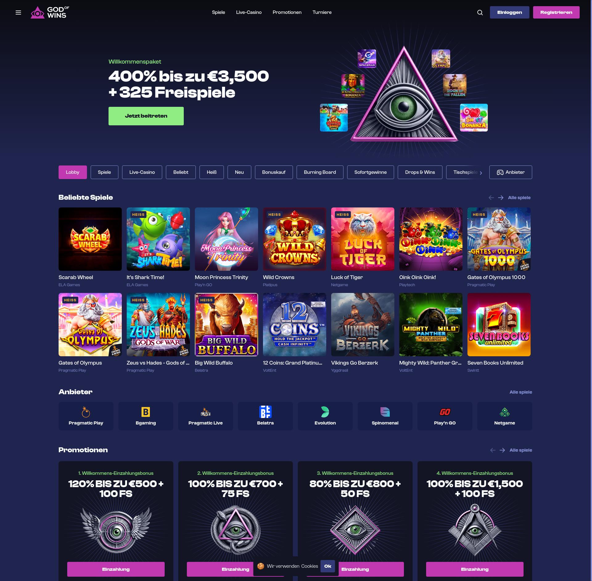 Gioca alle slot 0 dei fornitori di giochi di 0 al God Of Wins Casino. Leggi la nostra recensione di God Of Wins per saperne di più sui bonus e sulle promozioni di God Of Wins, sui giri gratuiti del Casinò God Of Wins e molto altro!