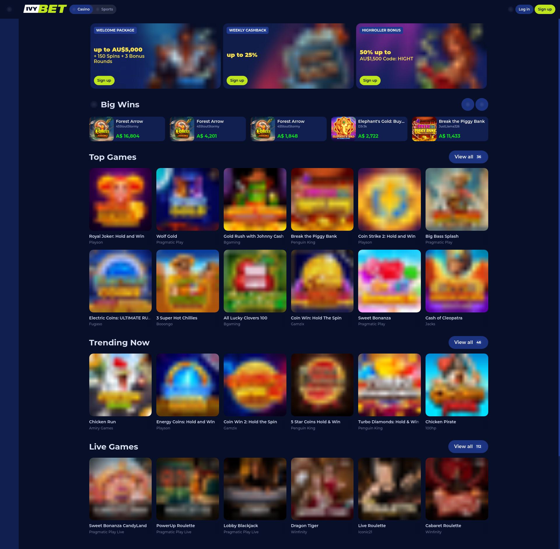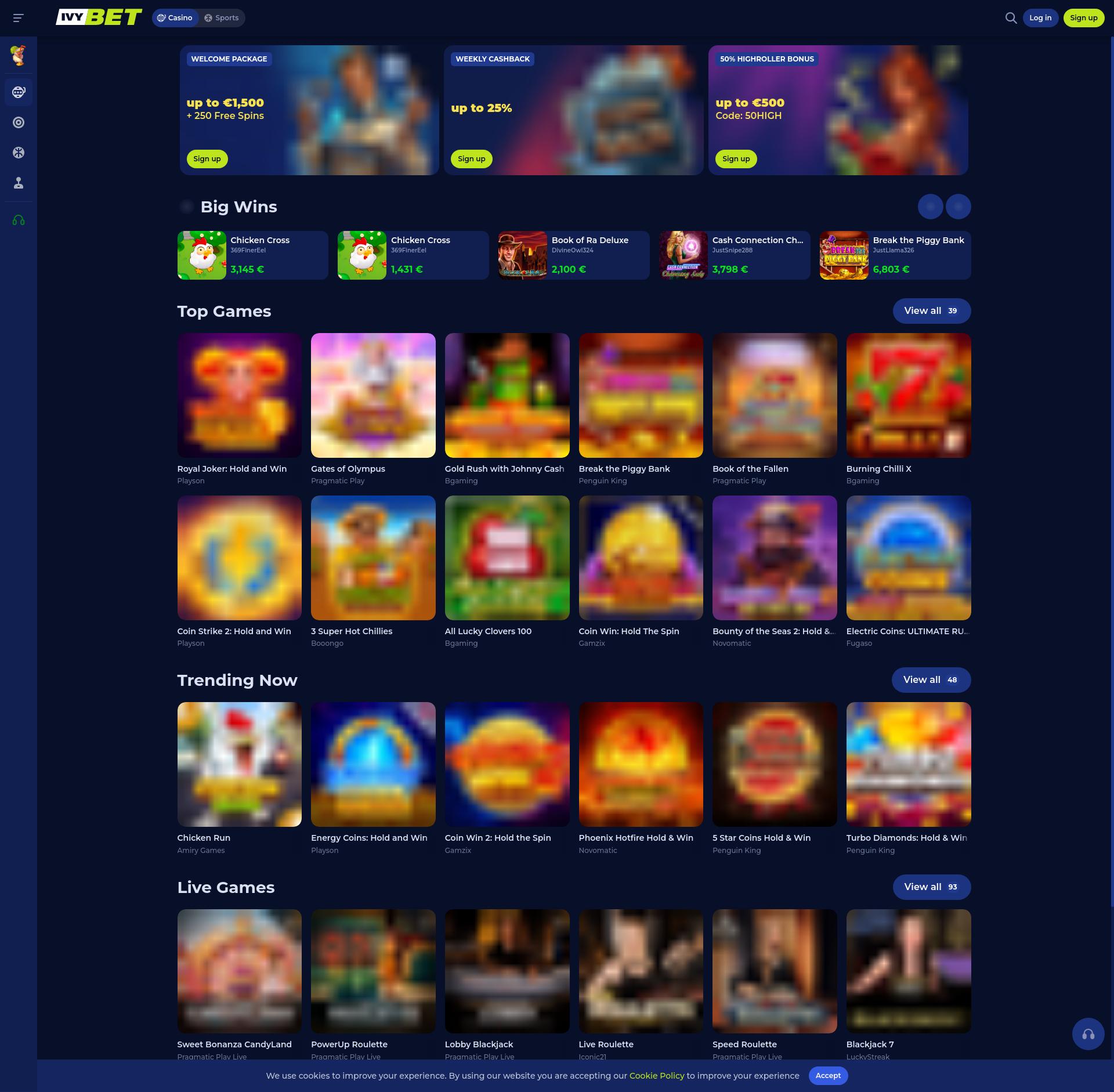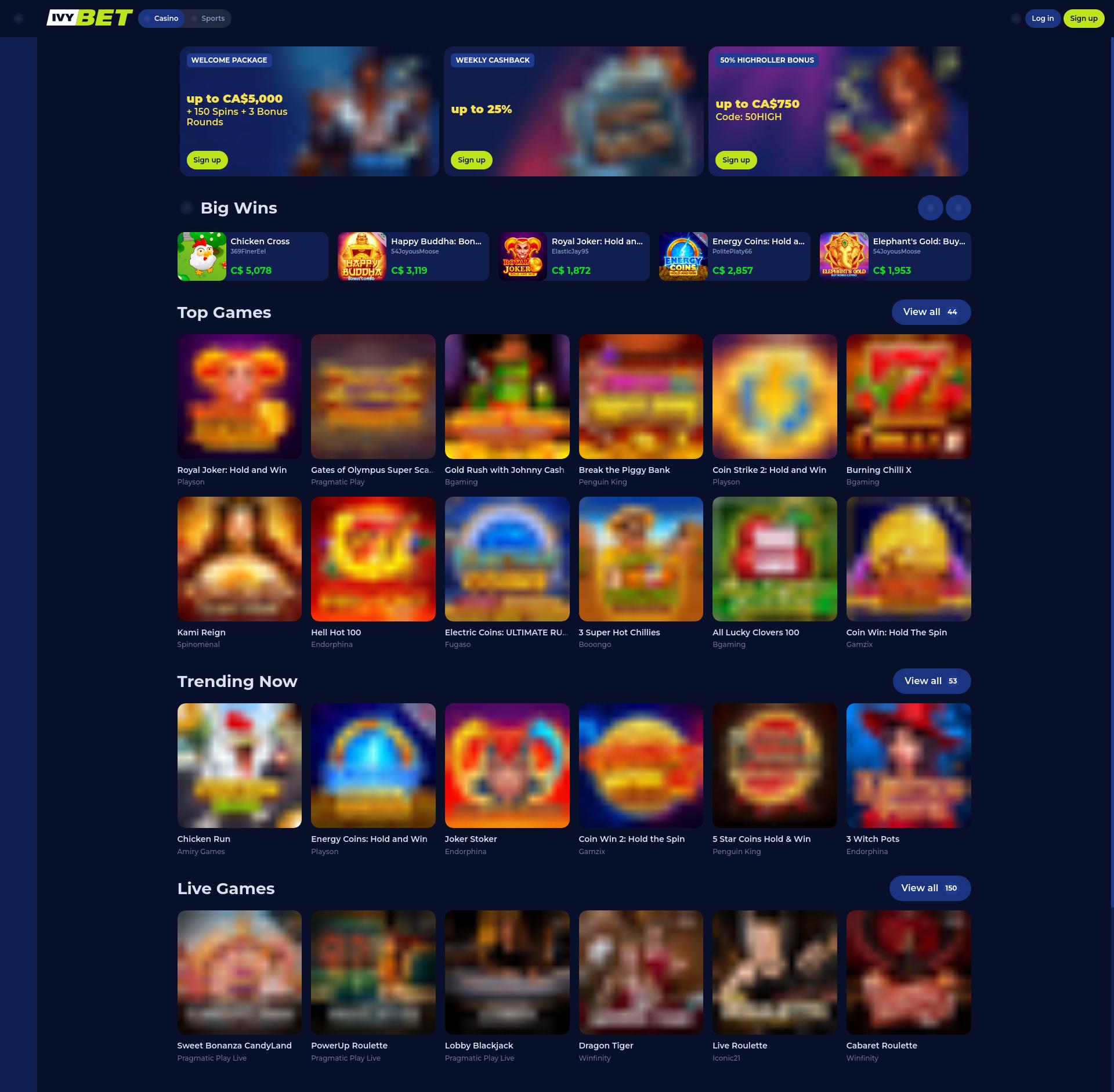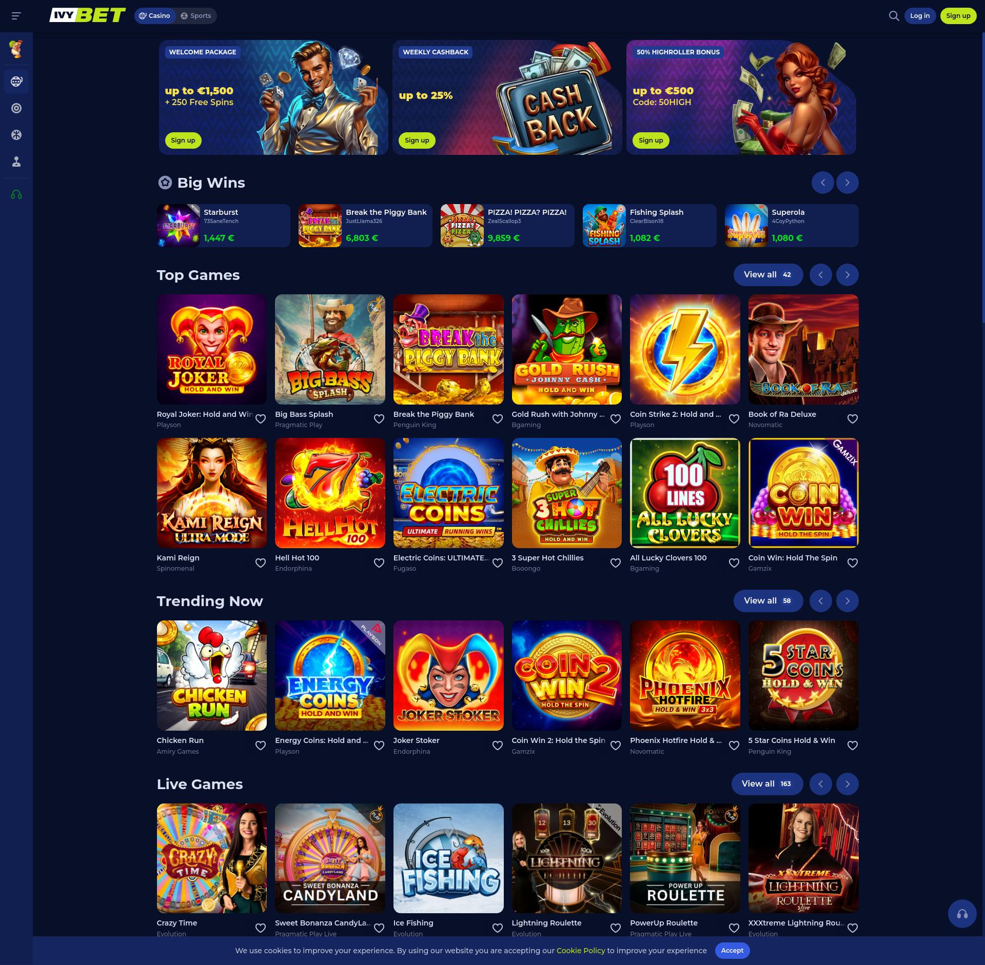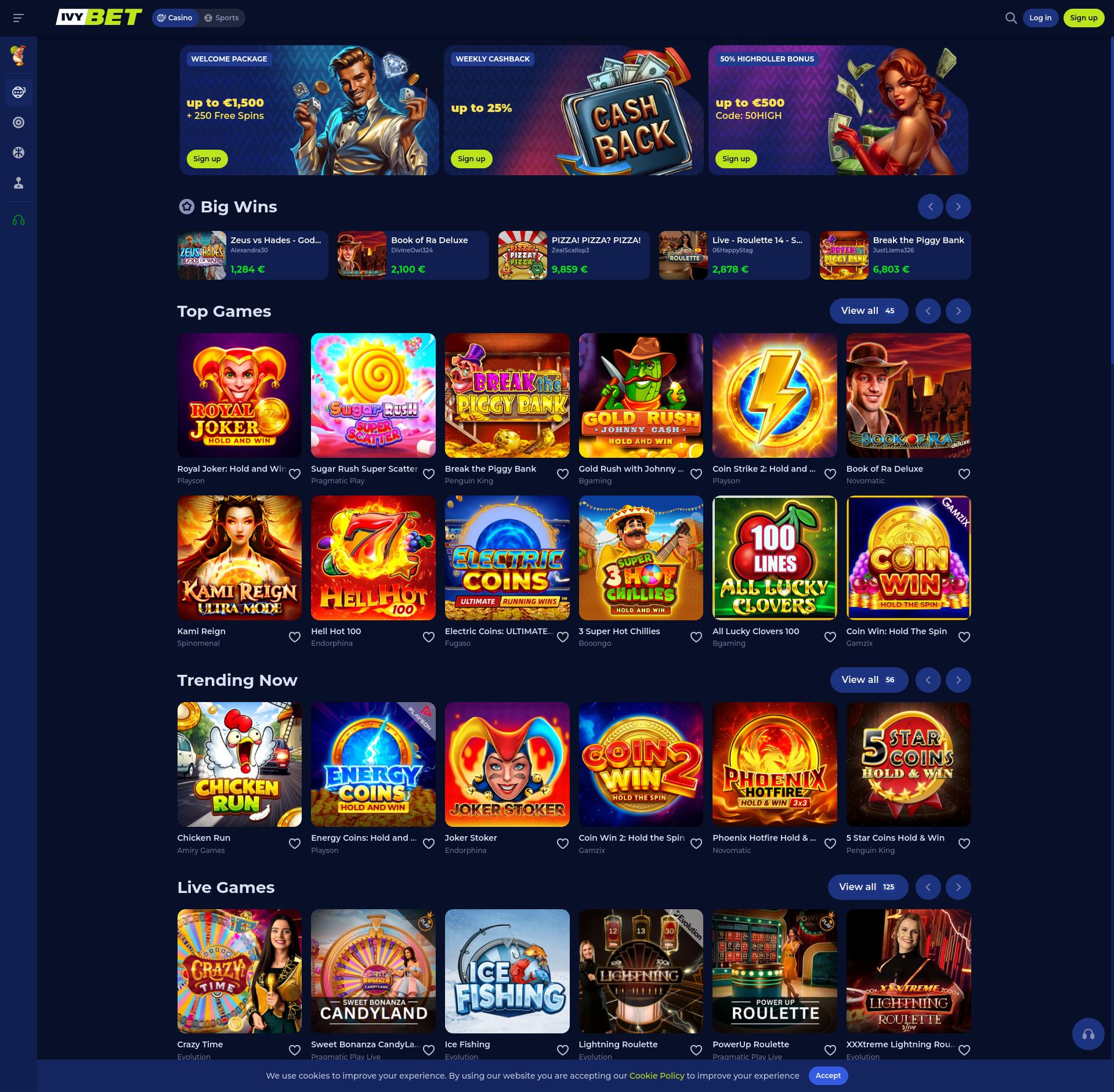 Ivybet è stata fondata in 2025. Ha licenze da: . Prova slot emozionanti e altri giochi! Ivybet ha oltre 6198 giochi in totale, dai fornitori di giochi 108. La maggior parte dei giochi sono Video Slot. Il casinò ha anche Altri tipi e Casinò in diretta.