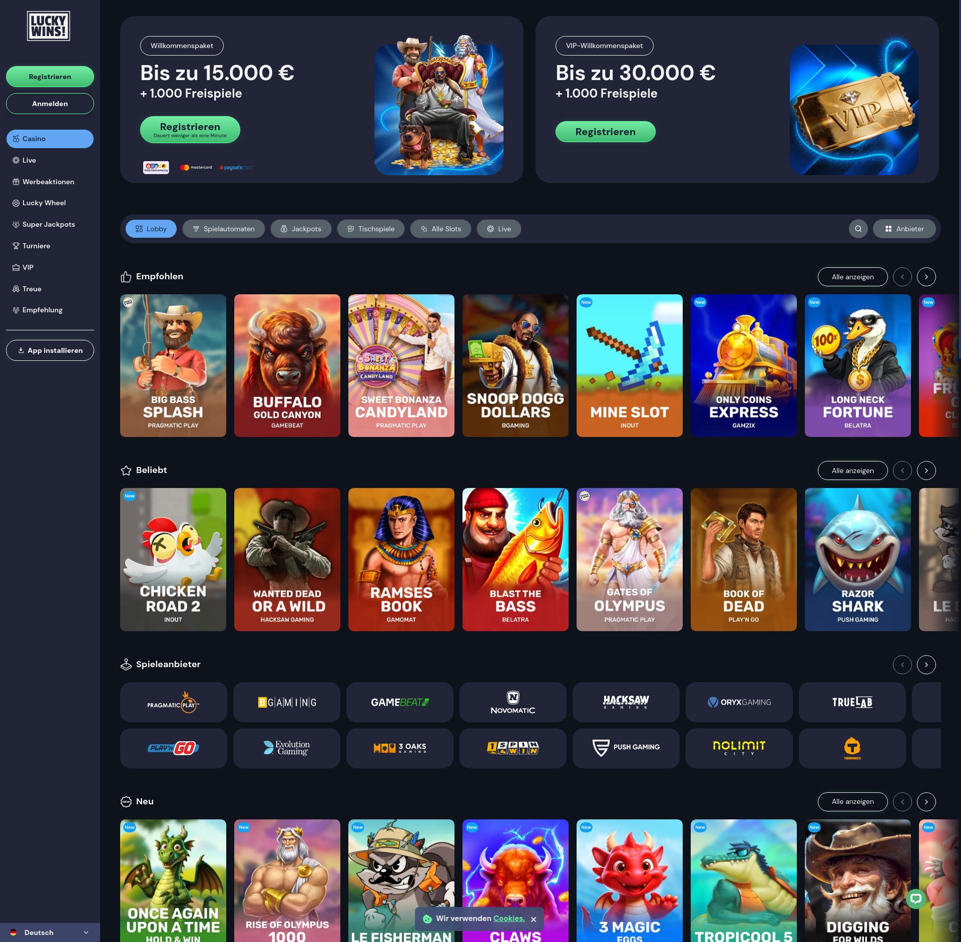 Gioca alle slot 0 dei fornitori di giochi di 0 al LuckyWins Casino. Leggi la nostra recensione di LuckyWins per saperne di più sui bonus e sulle promozioni di LuckyWins, sui giri gratuiti del Casinò LuckyWins e molto altro!