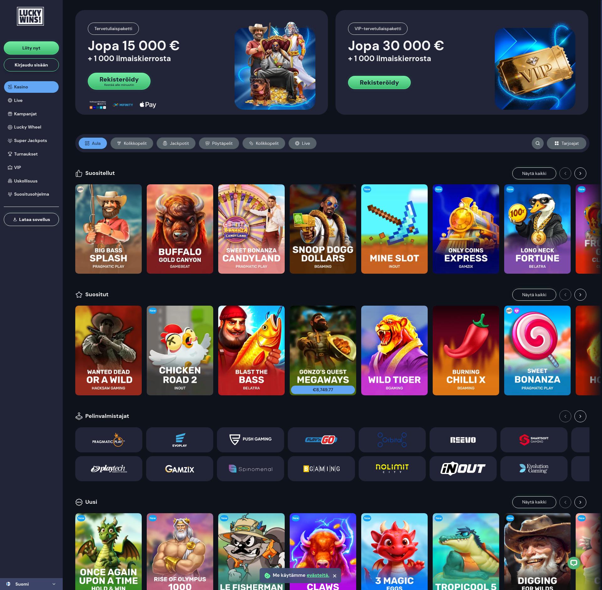LuckyWins è stata fondata in 2023. Ha licenze da: . Prova slot emozionanti e altri giochi! LuckyWins ha oltre 9365 giochi in totale, dai fornitori di giochi 219. La maggior parte dei giochi sono Video Slot. Il casinò ha anche Altri tipi e Biglietto gratta.