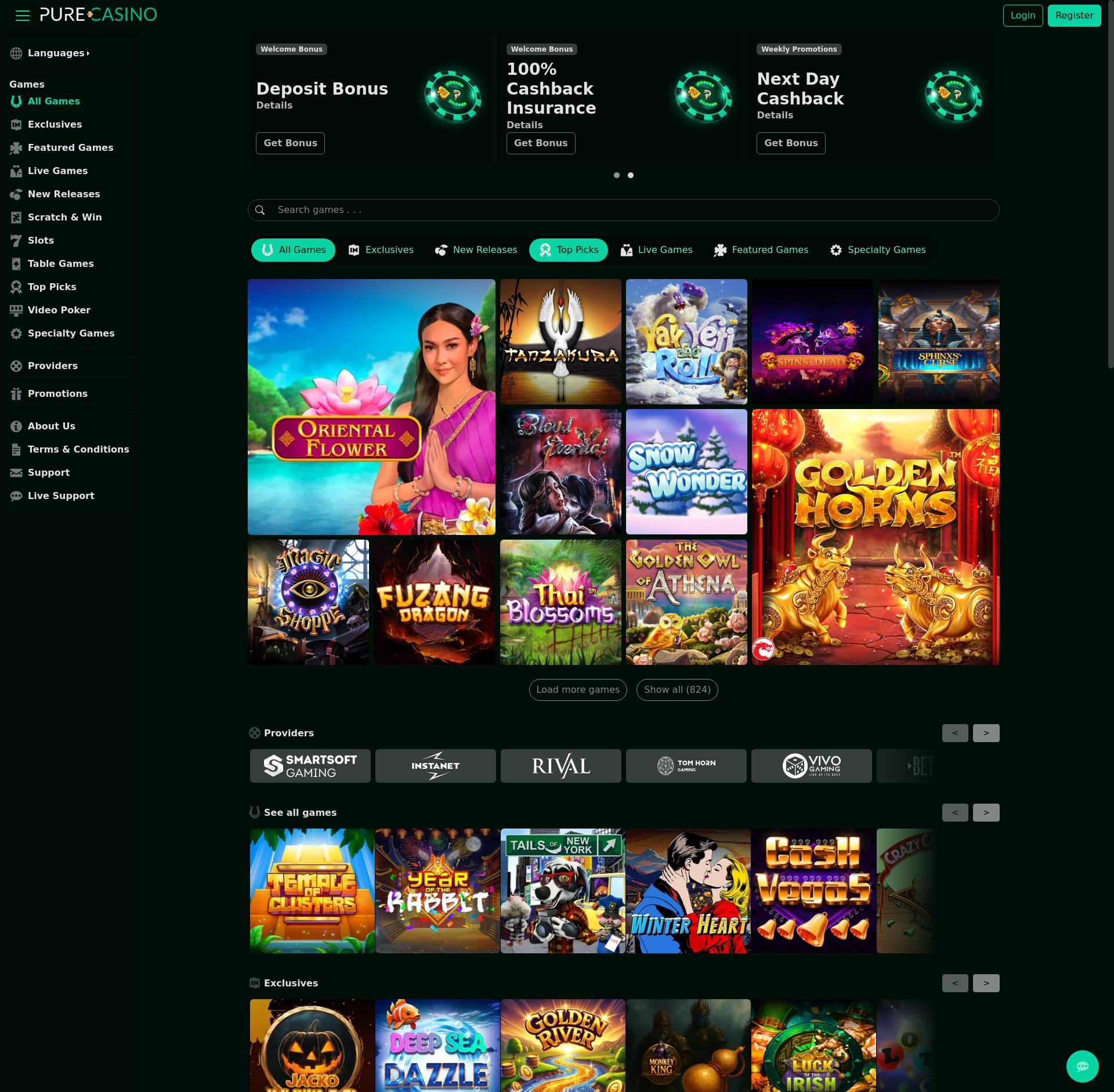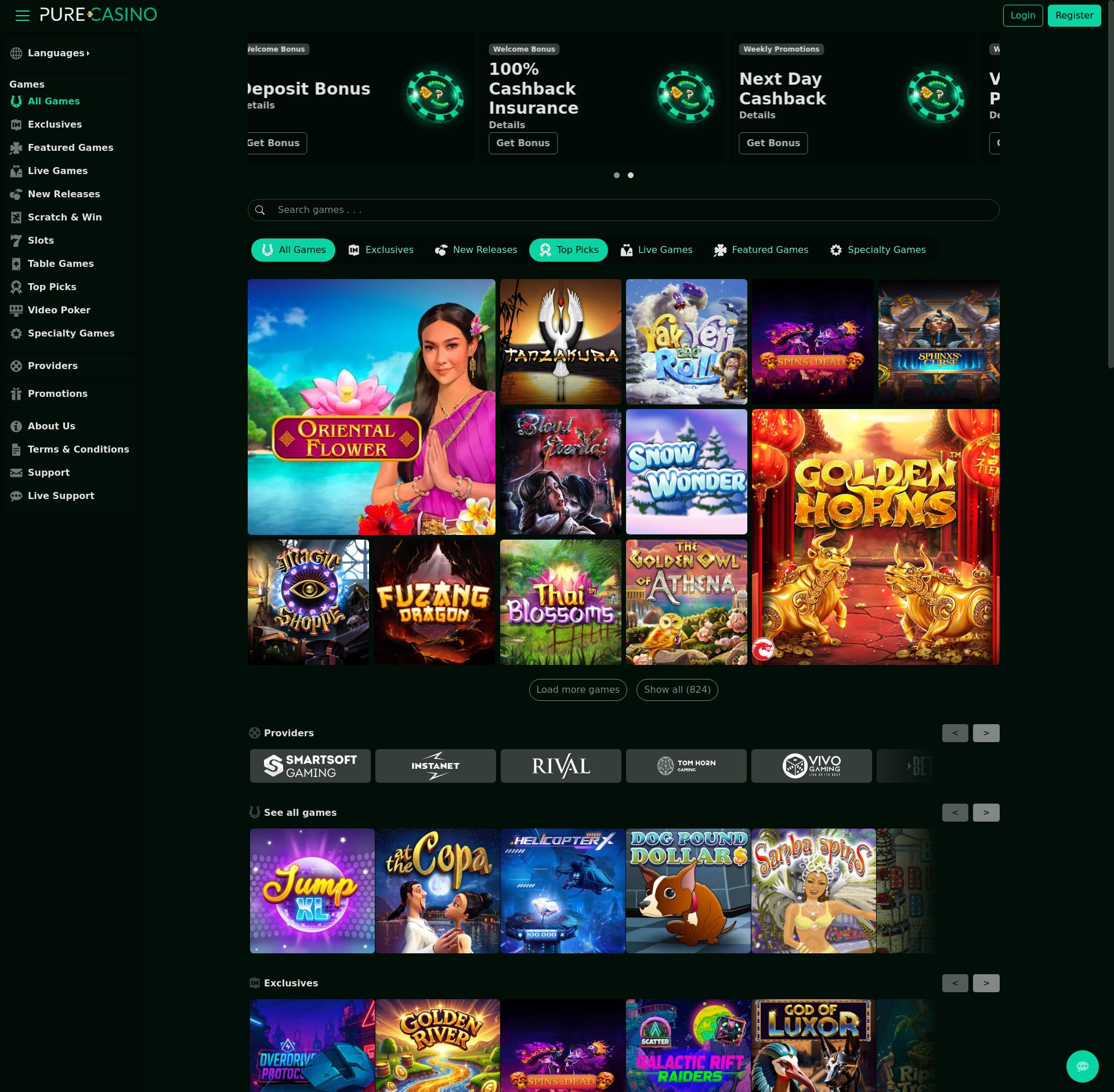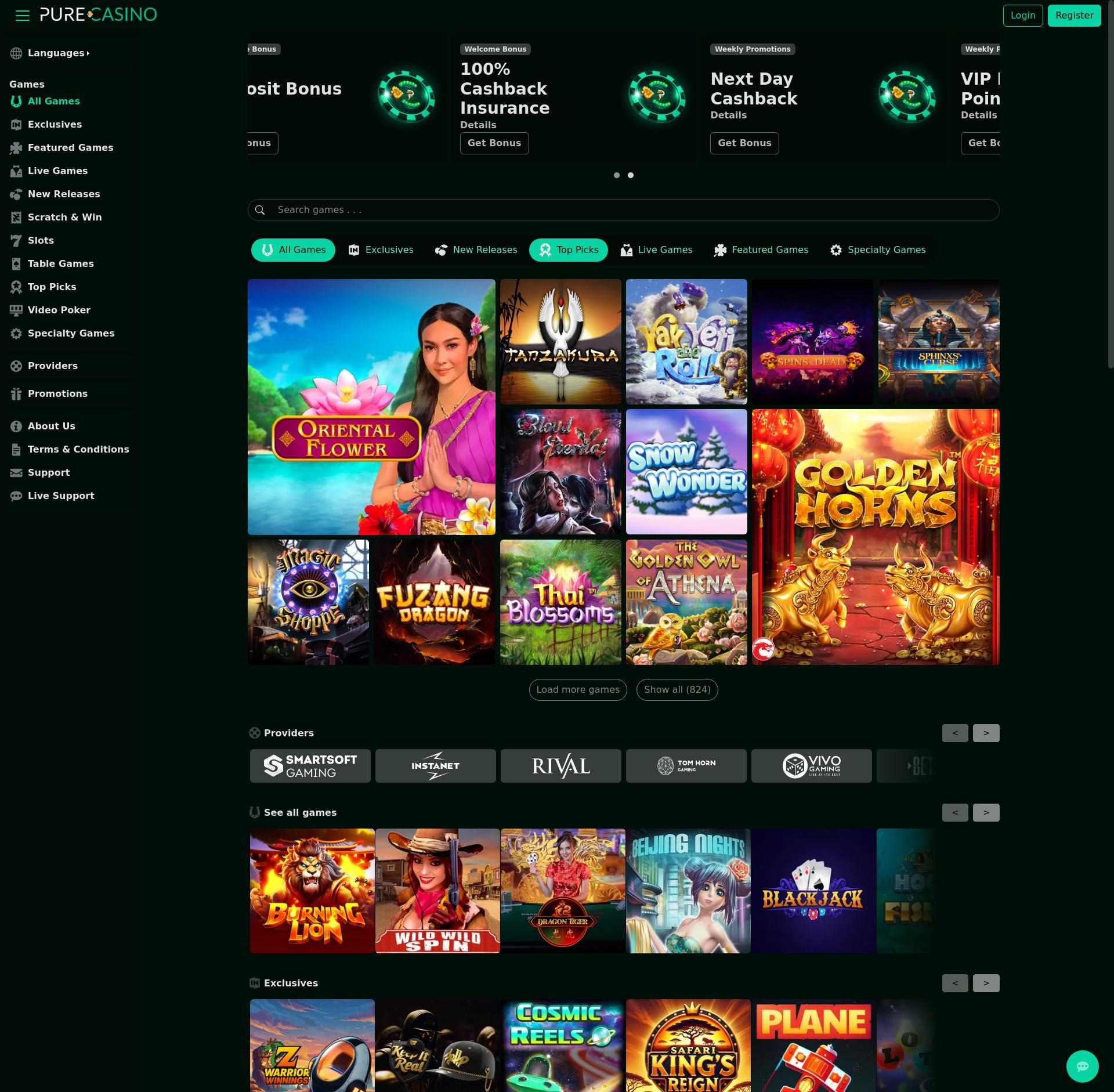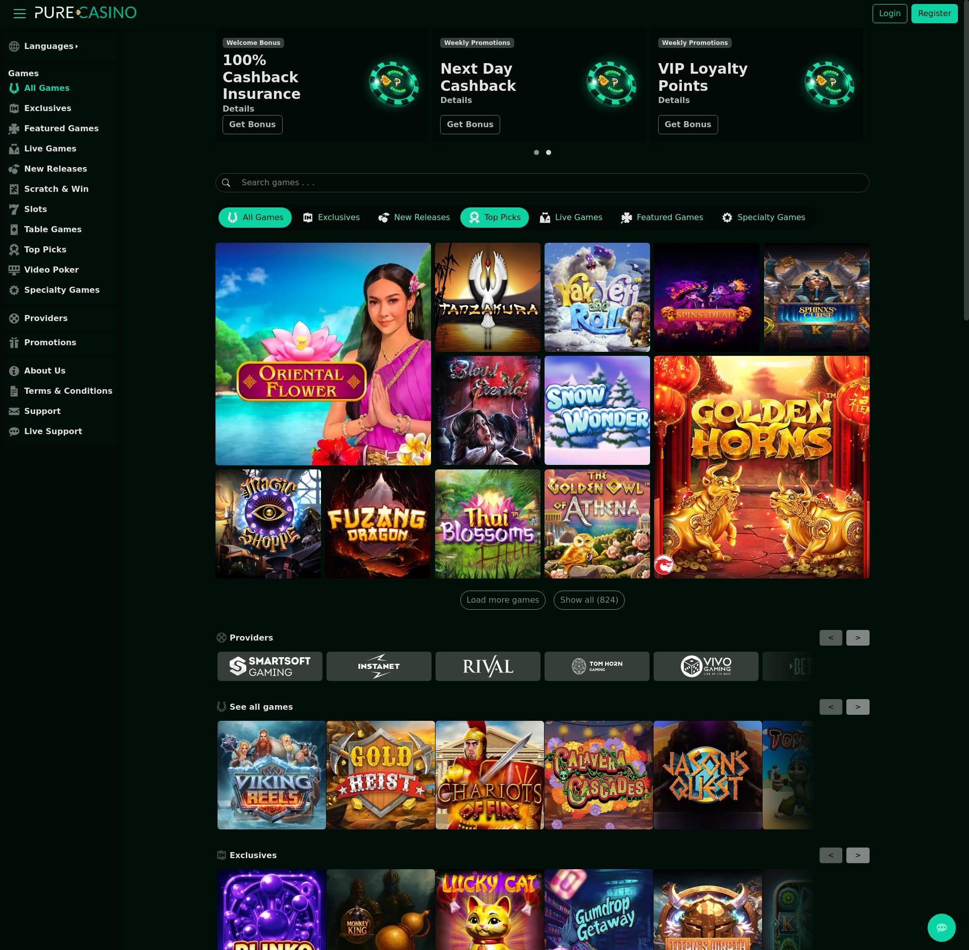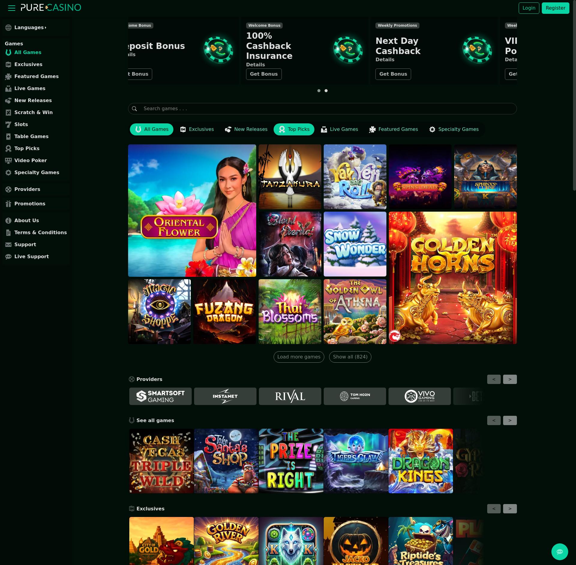 Gioca a 0 slot da 0 fornitori di giochi a Pure Casino. Leggi la nostra recensione di Pure Casino per saperne di più su Pure Casino bonus e promozioni, Pure Casino giri gratis e molto altro!