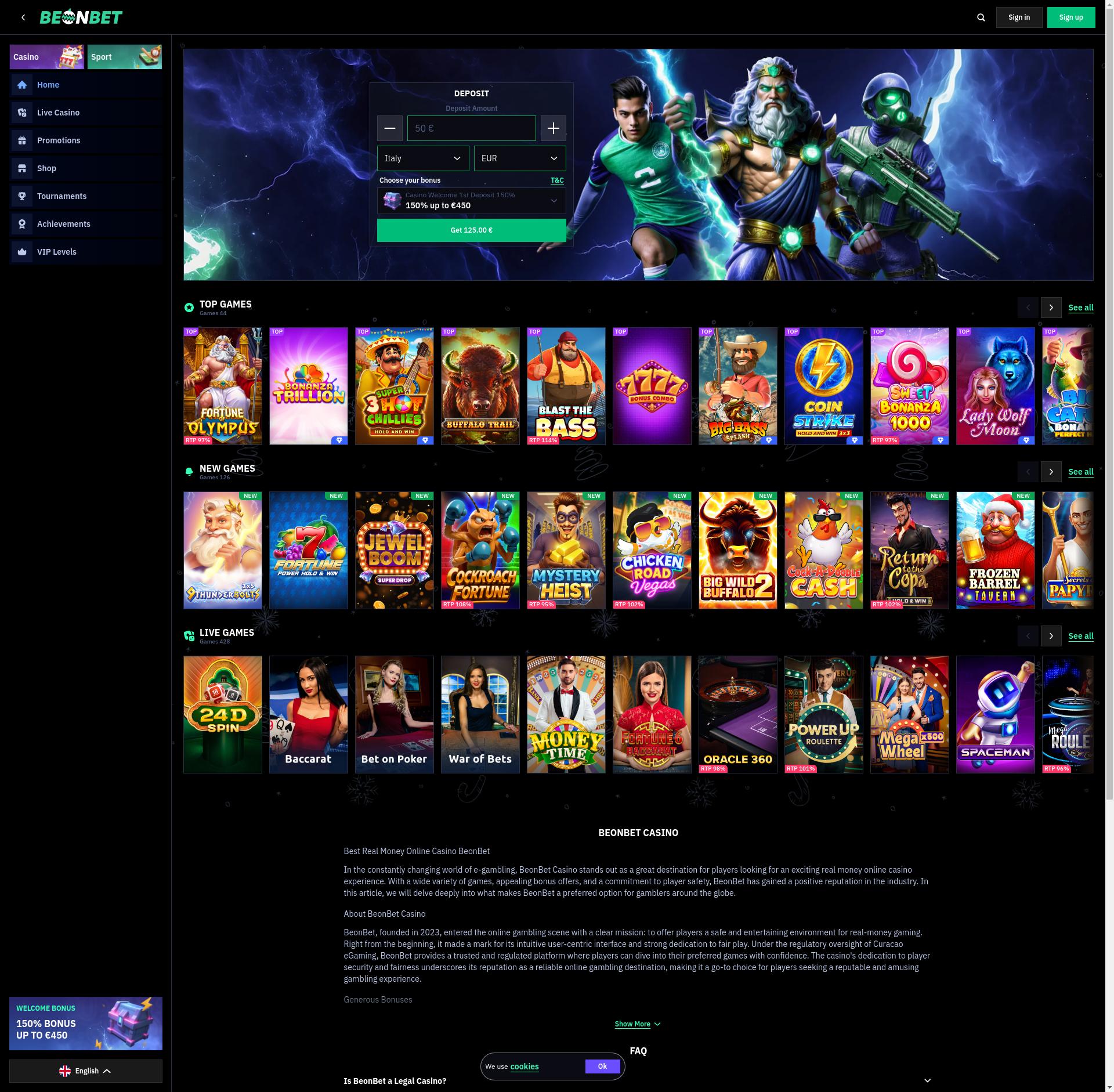 Beonbet Casino: Welcome Bonus (EN ROW)