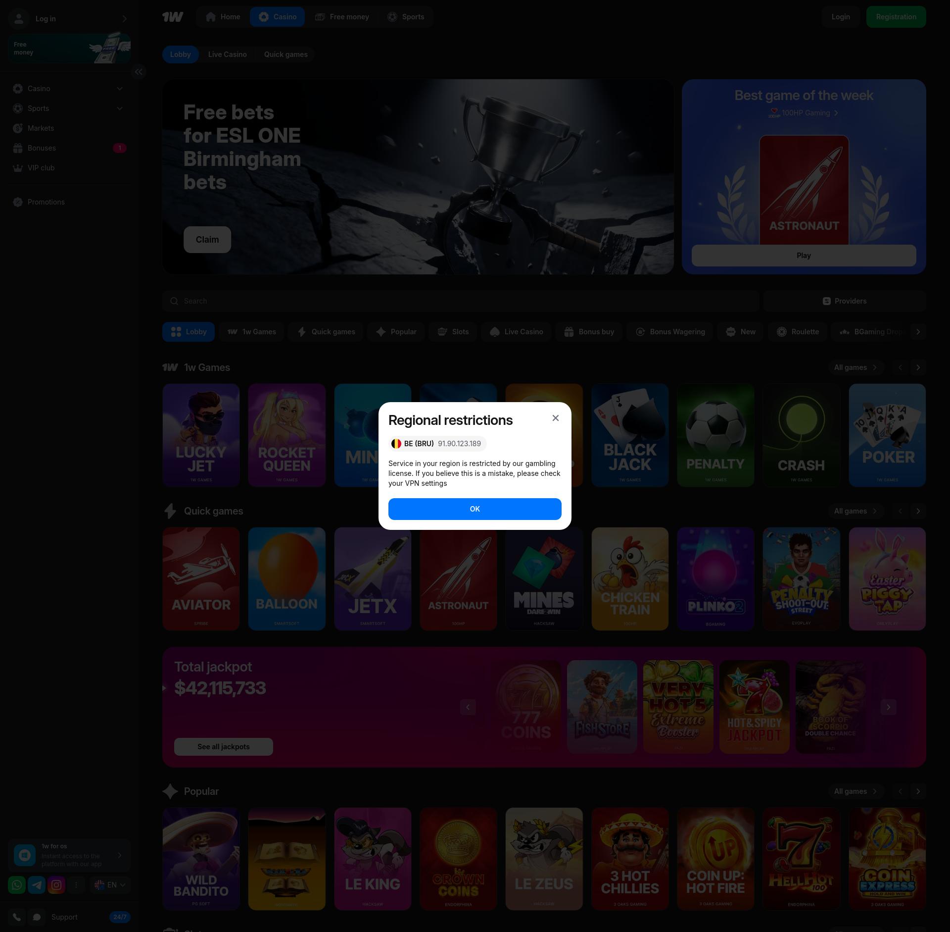 Operatör, 1Win'i piyasaya sürerek, açık bir şekilde geniş Rusya ve Doğu Avrupa pazarlarını hedefliyor. Yine de, bazı ülkeler kısıtlı listede kalmaya devam ediyor. Ancak sistem izin verirse Hızlı veya Standart kayıt yapabilirsiniz. Kısa biçimi seçseniz bile, daha sonra ek bilgi sağlamanız istenecektir.