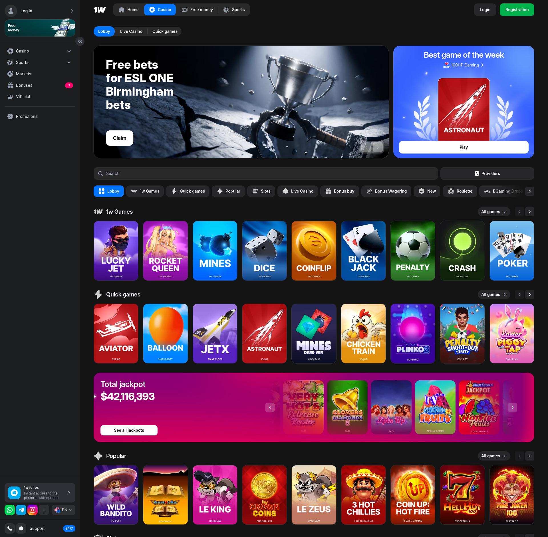 1Win Casino, Ukraynaca, Özbekçe ve Tacik gibi daha nadir olanlar da dahil olmak üzere birçok dilde mevcuttur. Jackpot'lara, aktif turnuvalara ve promosyon oyunlarına sitedeki birçok afiş aracılığıyla erişin. Genel olarak, platform birçok ilginç ve kullanışlı özellik sunar, bu yüzden onu keşfetmek için birkaç dakika ayırmanızı öneririz.