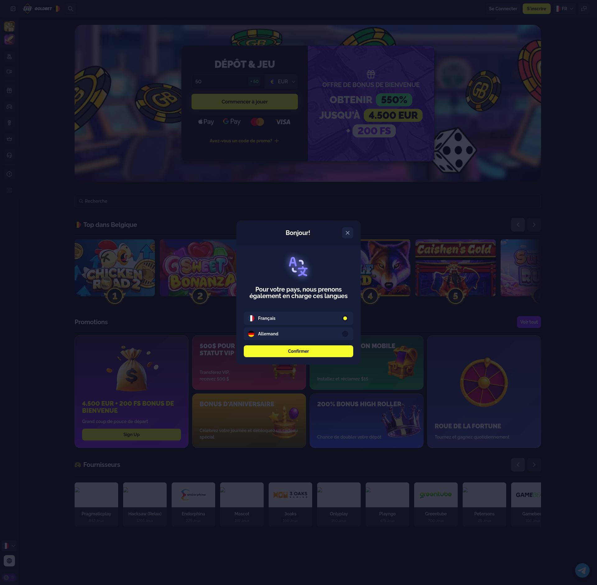 Goldbet Casino’de 140 oyun sağlayıcılarından 5200 slot oyunlarını oynayın. Goldbet Casino bonuslar ve promosyonlar, Goldbet Casino bedava dönüşler ve çok daha fazlası hakkında daha fazla bilgi edinmek için Goldbet Casino incelememizi okuyun!