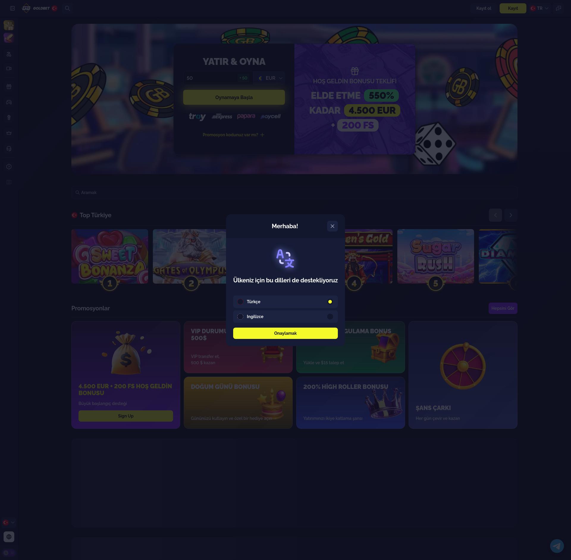 Türkiye’den itibaren oyuncular için bonus mevcuttur