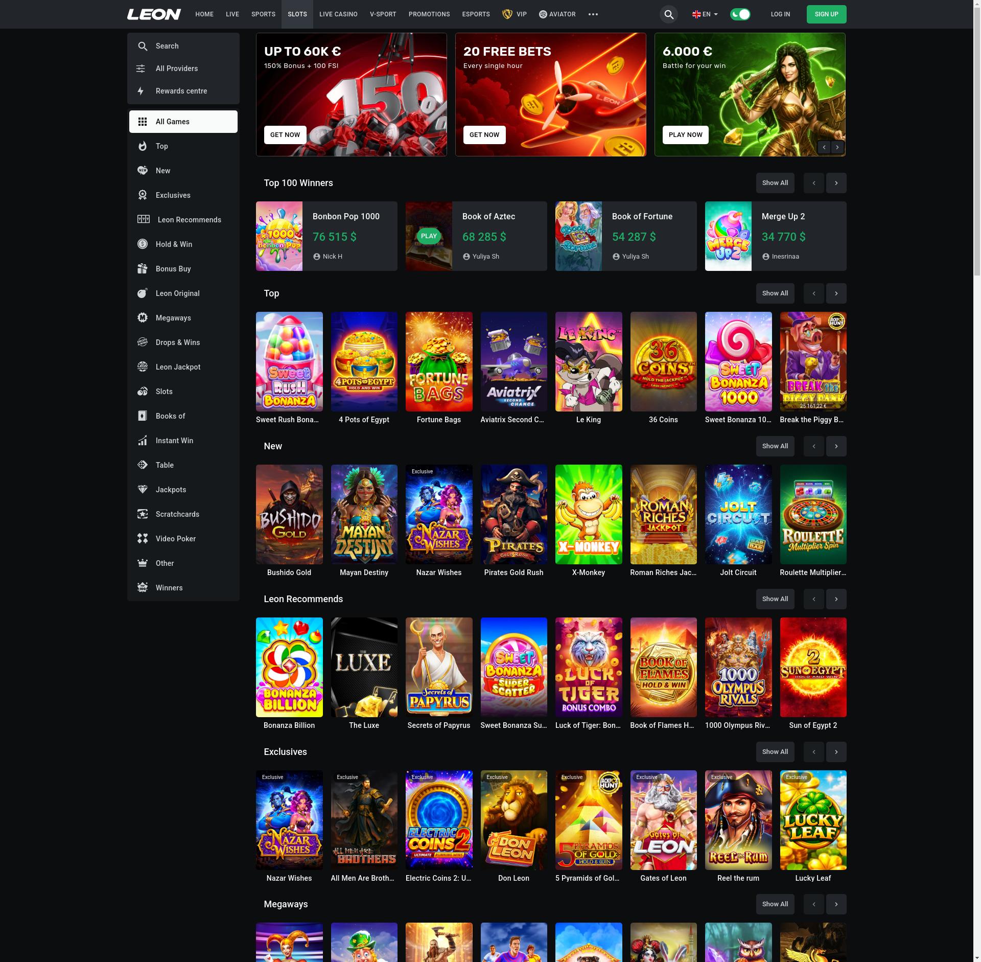 Нещодавно LEON додало такі слоти: